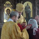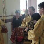 После Божественной литургии был совершен Крестный ход вокруг храма, после которого владыка Аксий поздравил всех с престольным праздником и обратился к верующим с архипастырским словом.
