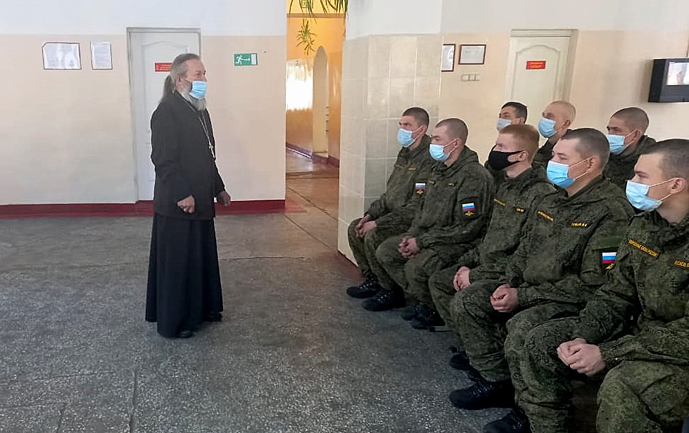 По окончании торжественных мероприятий состоялась беседа священнослужителя с личным составом о основах Православной веры.