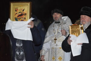 Перед началом Литургии был совершён крестный ход вокруг храма.