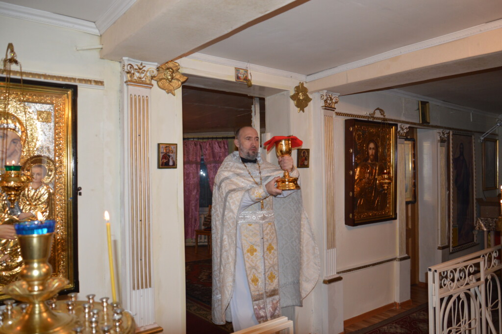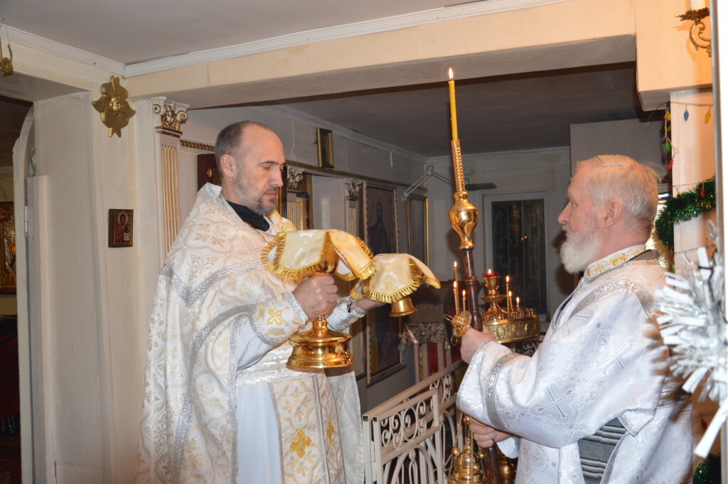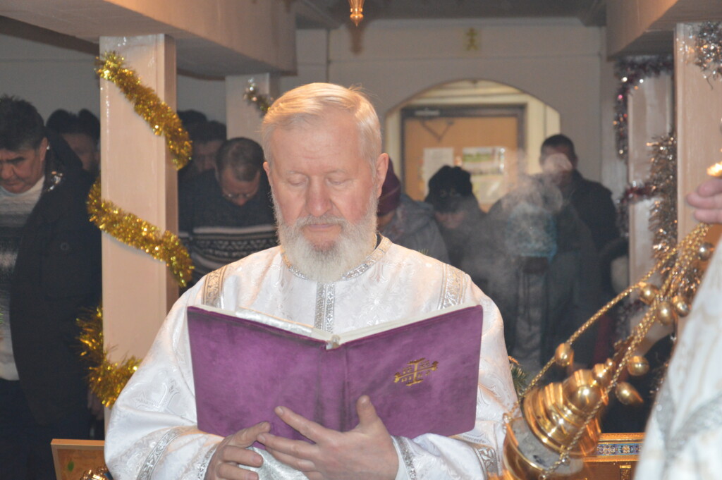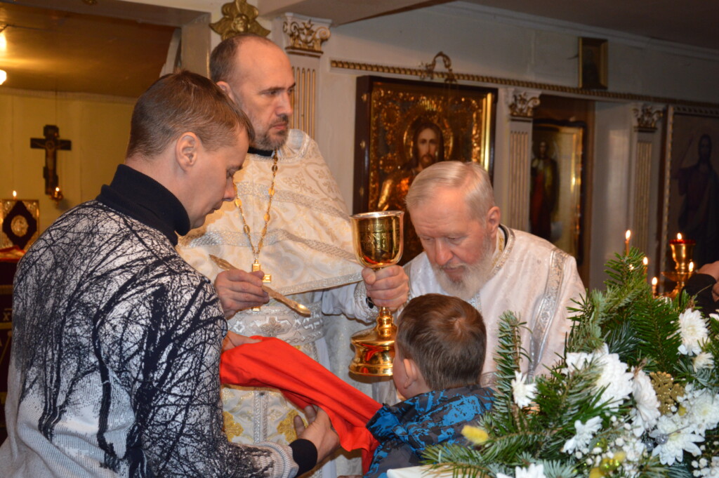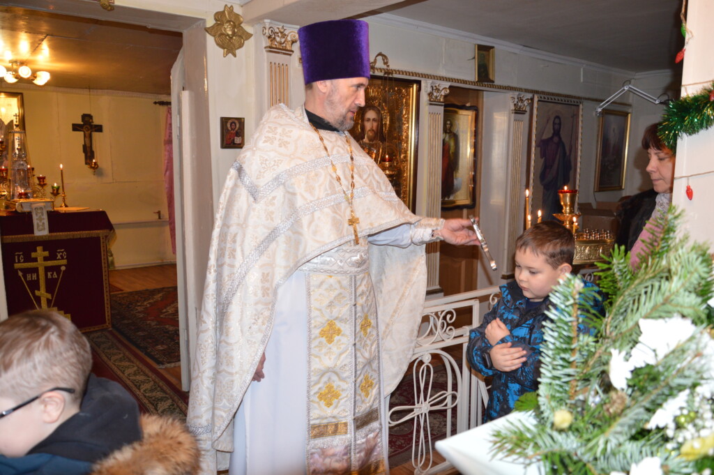В ночь с 6 на 7 января 2023 года, в праздник Рождества Господа Бога и Спаса нашего Иисуса Христа, священник Владимир Смирнов совершил Божественную литургию в храме Рождества Христова г. Могоча.