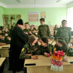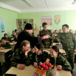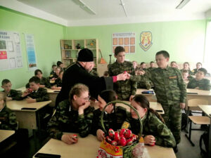20 апреля 2023, в четверг Светлой седмицы, секретарь Нерчинской епархии игумен Симеон (Зимняков) посетил казачий класс в МАОУ «СОШ №3» г. Краснокаменск.