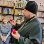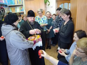 Священнослужитель поздравил коллектив педагогов с Праздником Светлого Христова Воскресения и подарил всем Пасхальные яйца.