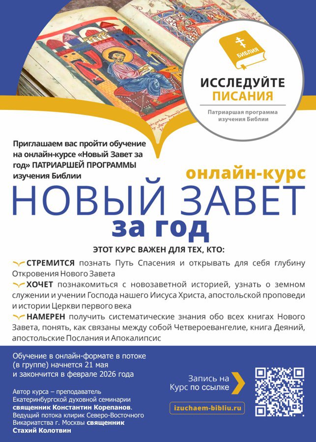 Приглашаем вас пройти обучение на онлайн-курсе «Новый Завет за год» Патриаршей программы изучения Библии.