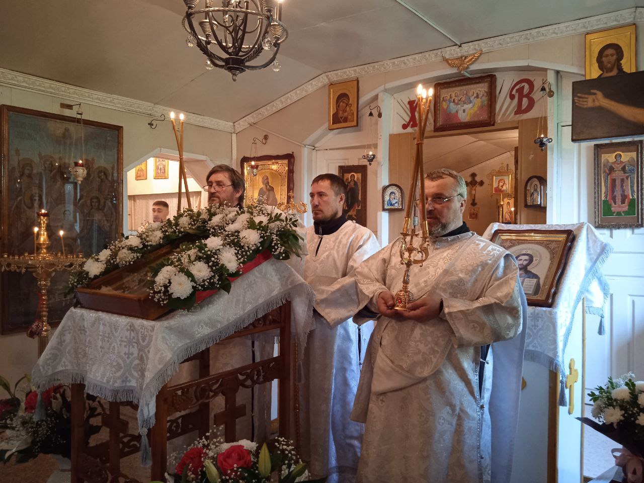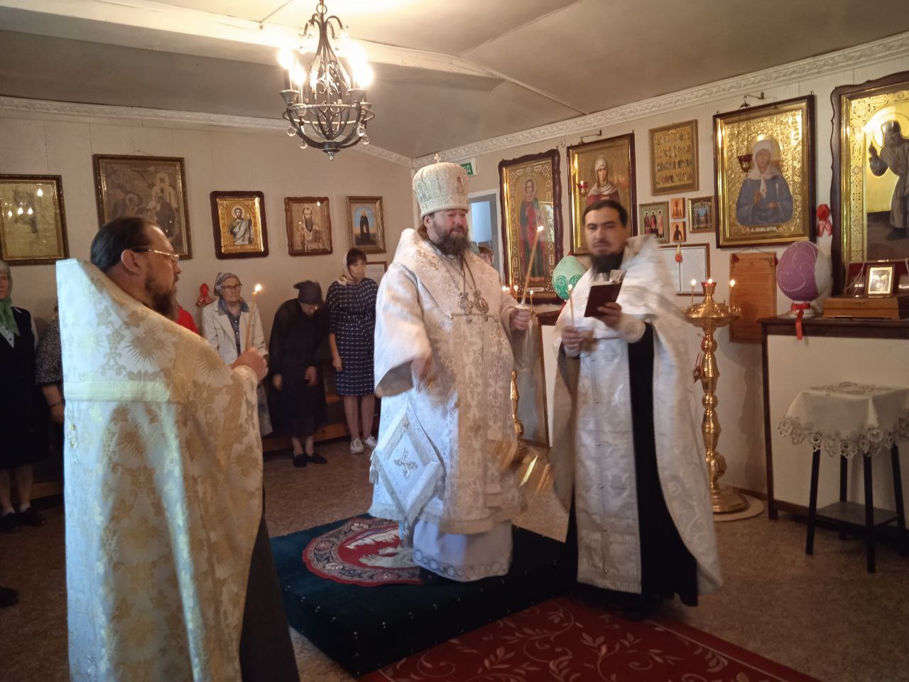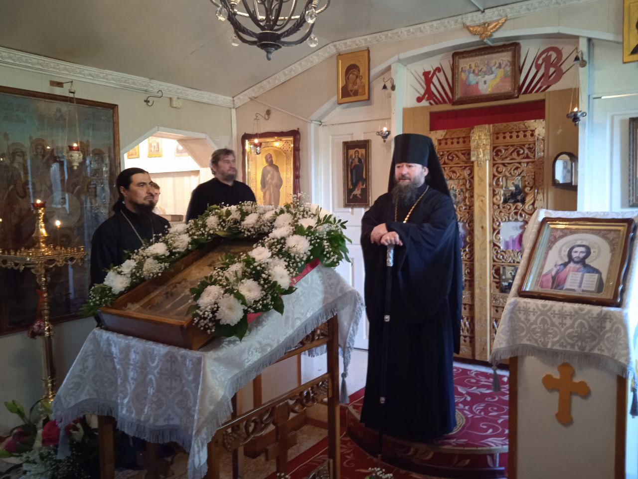 Его Преосвященству сослужили: секретарь Нерчинской епархии, настоятель храма Вознесения Господня в пгт. Забайкальск игумен Симеон (Зимняков); клирик Воскресенского кафедрального собора в г. Нерчинска иерей Роман Пичуев.
