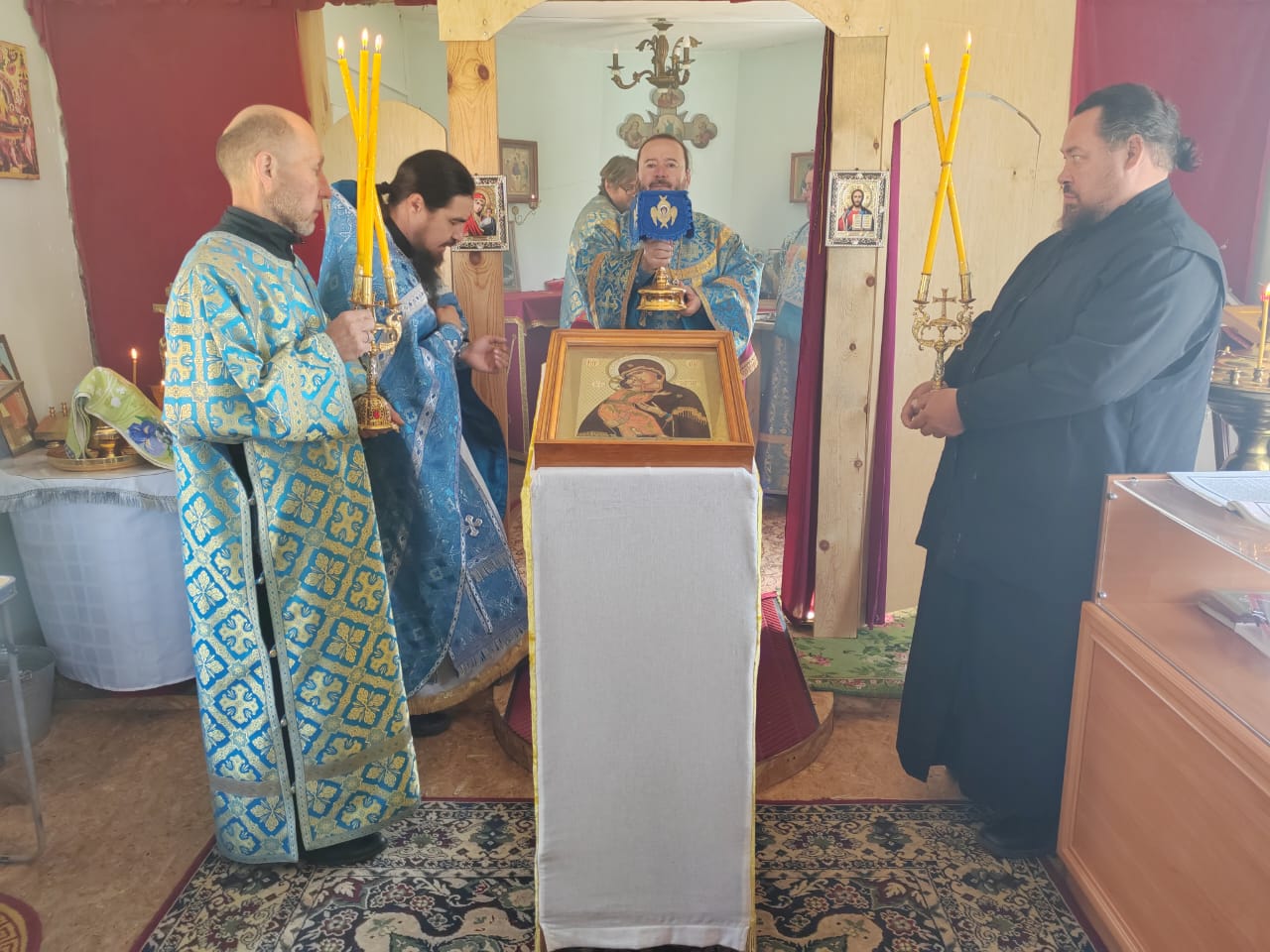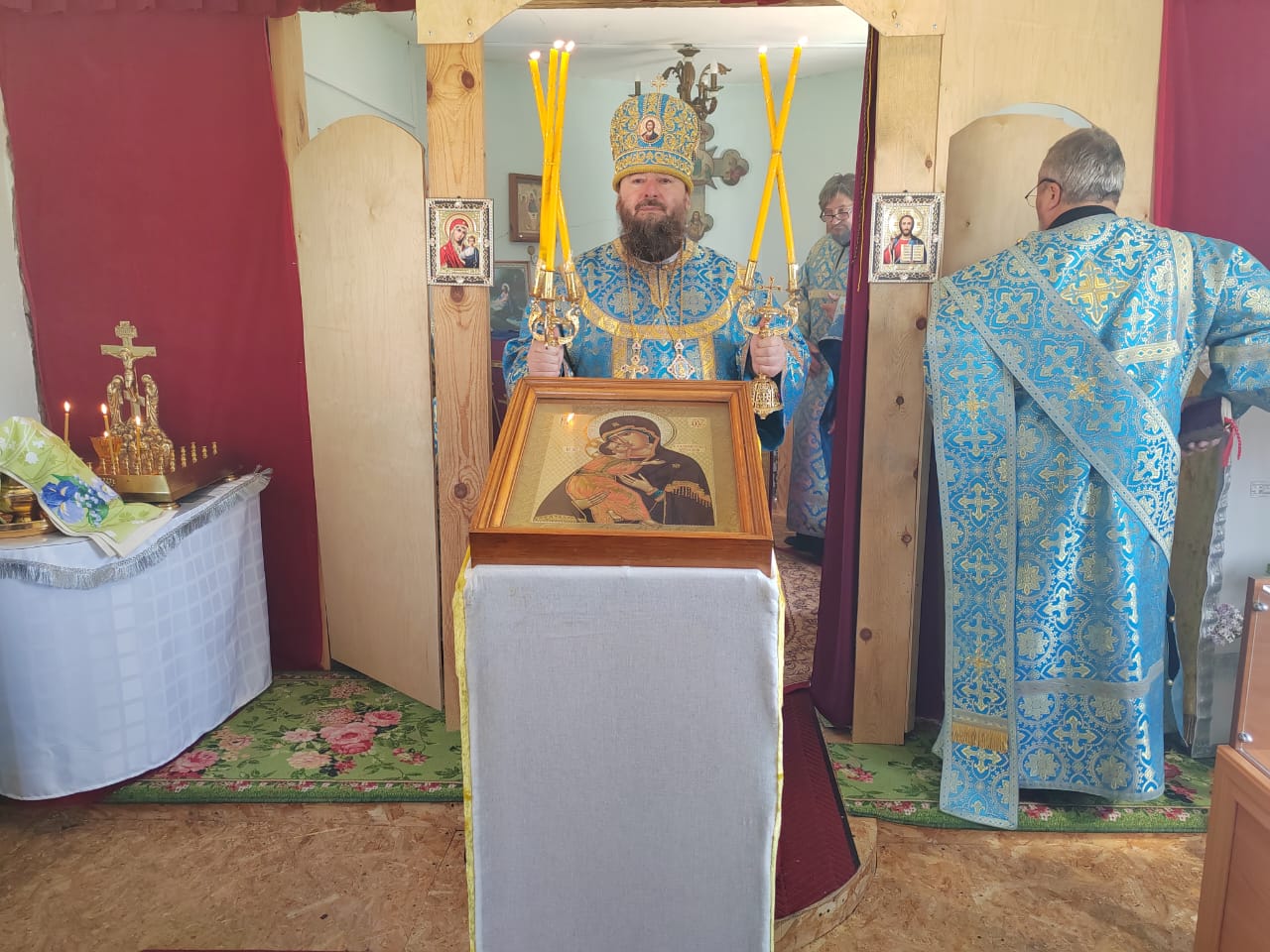 По окончании Литургии епископ Макарий совершил славление перед Владимирской иконой Божией Матери.