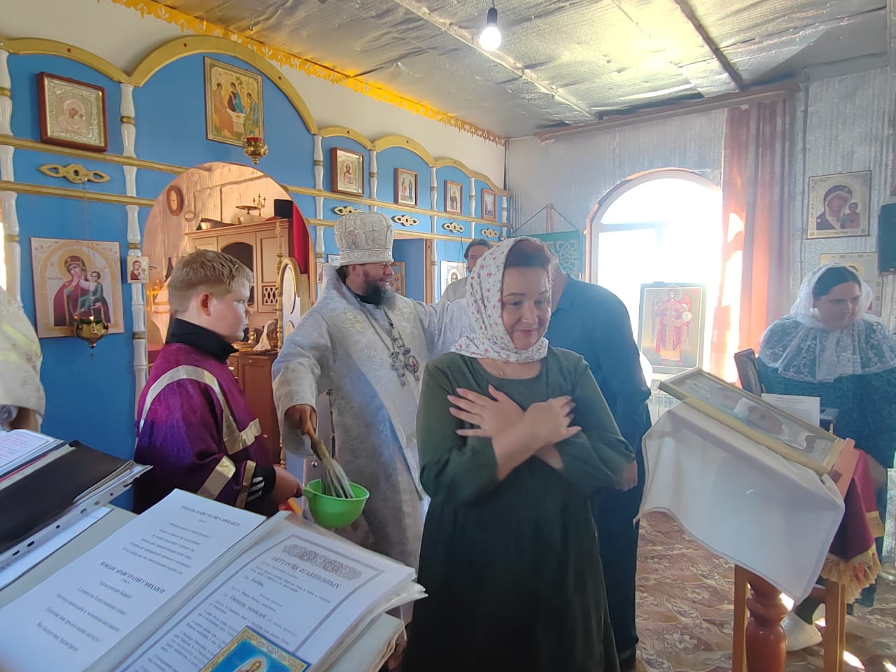Все молящиеся в храме были окроплены святой водой.
