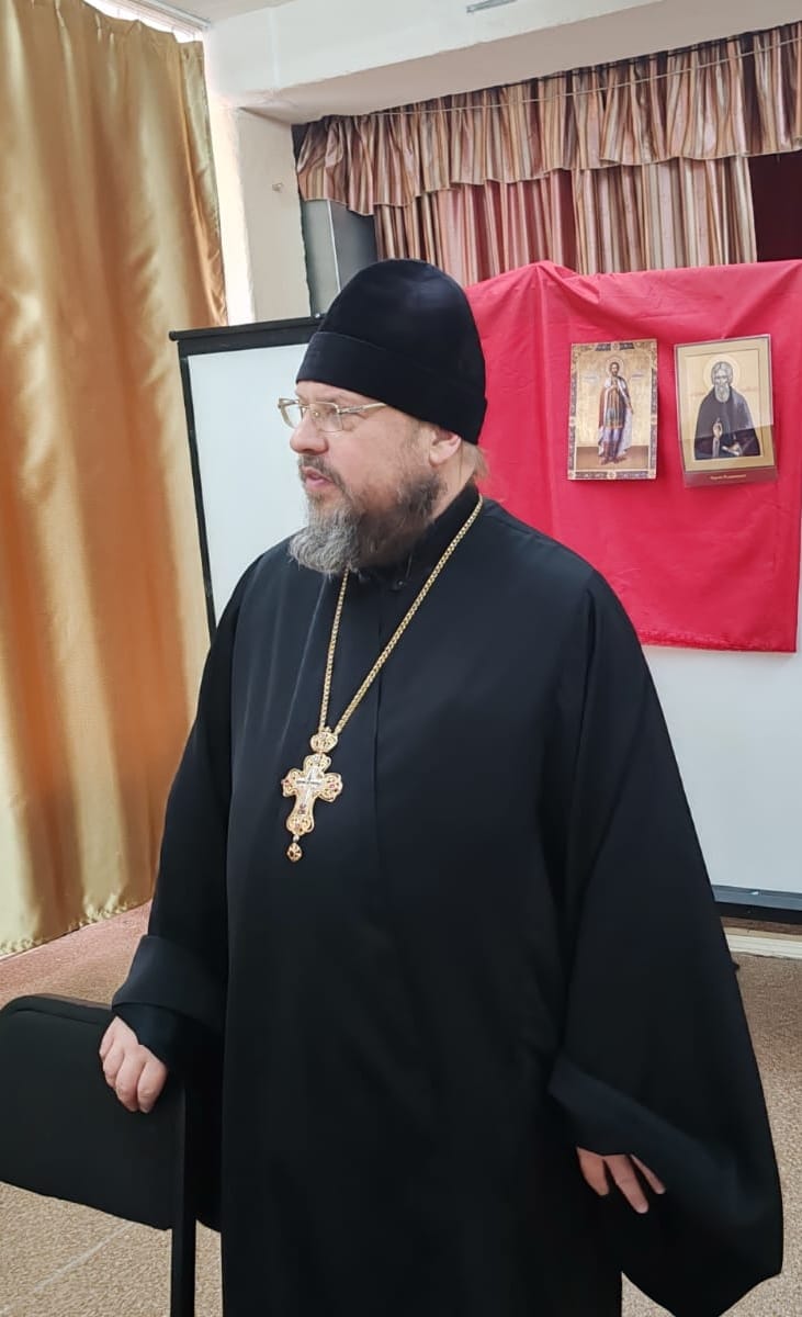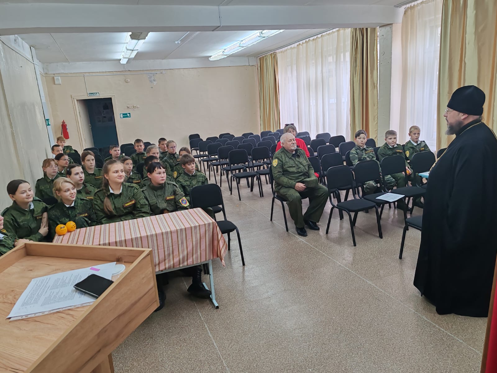 18 сентября 2025 года, по благословению епископа Нерчинского и Краснокаменского Макария, секретарь Нерчинской епархии игумен Симеон (Зимняков) провел встречу с кадетами казачьих классов в МАОУ «СОШ №3» г. Краснокаменск.