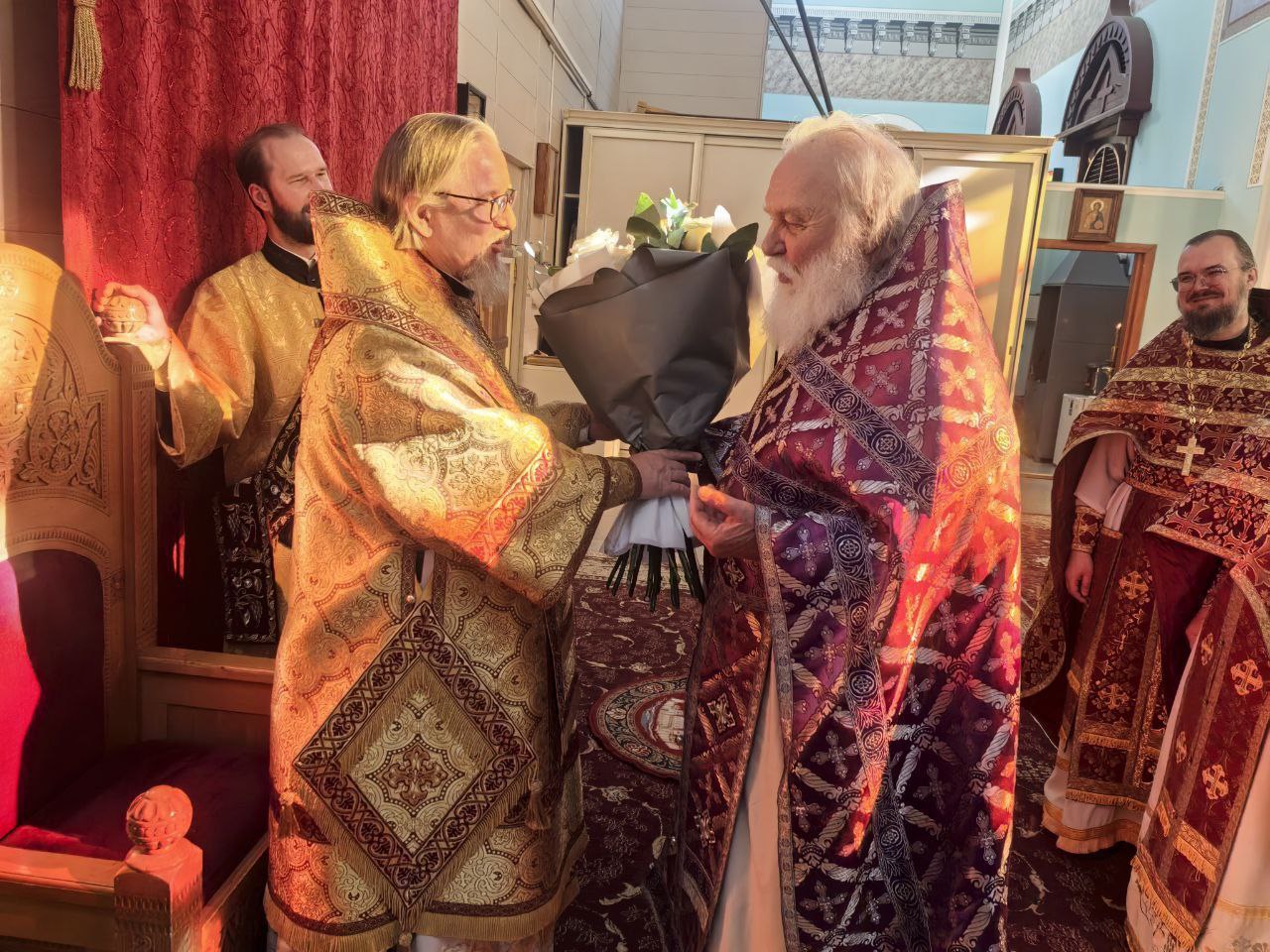 После богослужения, клирик Нерчинской епархии, настоятель храма святителя Николая Чудотворца пгт. Агинское протоиерей Валерий Компаниец от лица епископа Нерчинского и Краснокаменского Макария, а также клира и паствы Нерчинской епархии поздравил главу Забайкальской митрополии с днем тезоименитства.