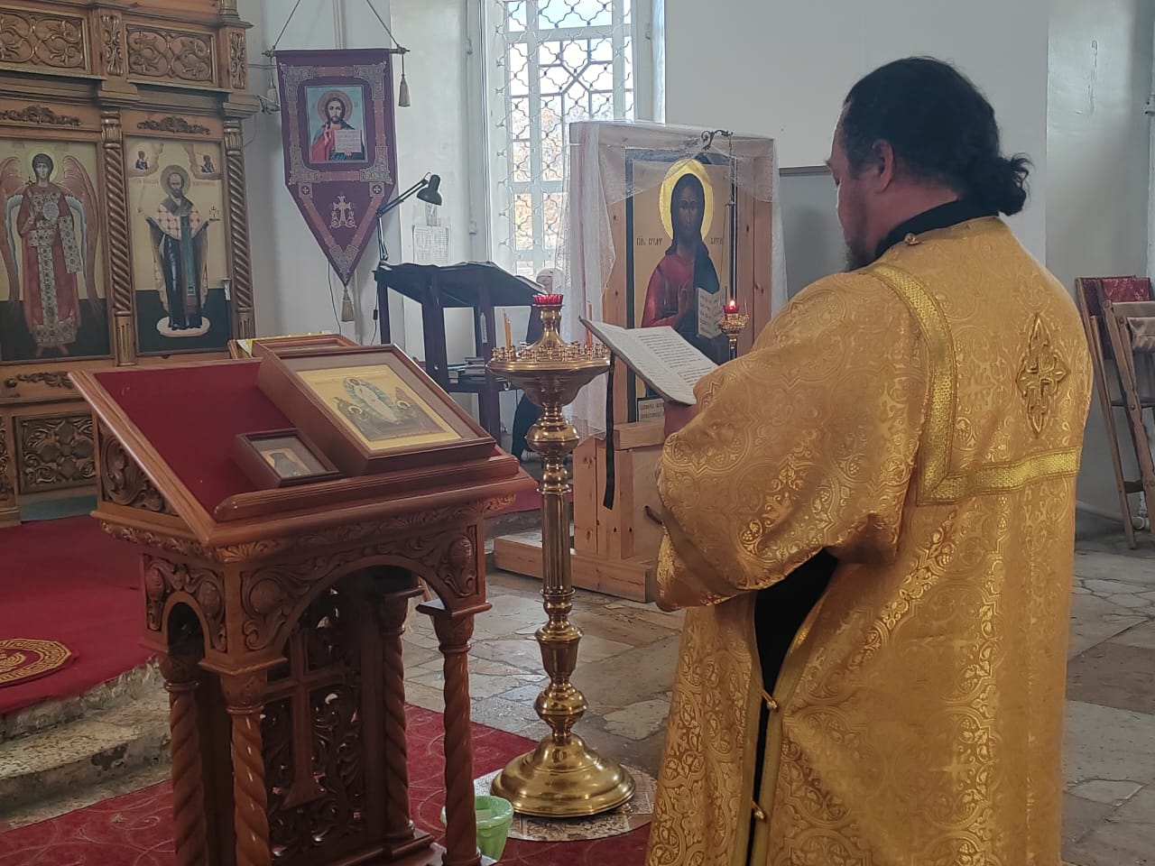 Его Преосвященству сослужил ключарь кафедрального собора Воскресения Христова г. Нерчинска иерей Роман Пичуев.