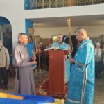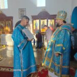 Его Преосвященству сослужили: настоятель храма Рождества Пресвятой Богородицы в пгт. Чернышевск протоиерей Андрей Кисов, ключарь кафедрального собора Воскресения Христова г. Нерчинска иерей Роман Пичуев.