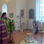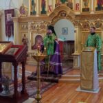 Его Преосвященству сослужили: настоятель храма святителя Николая Чудотворца в пгт. Агинское протоиерей Валерий Компаниец, ключарь кафедрального собора Воскресения Христова г. Нерчинска иерей Роман Пичуев.