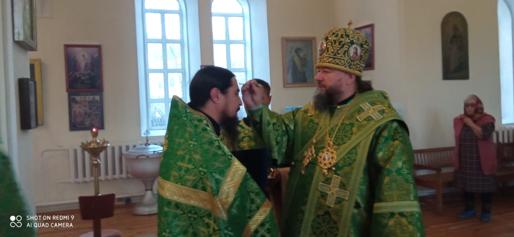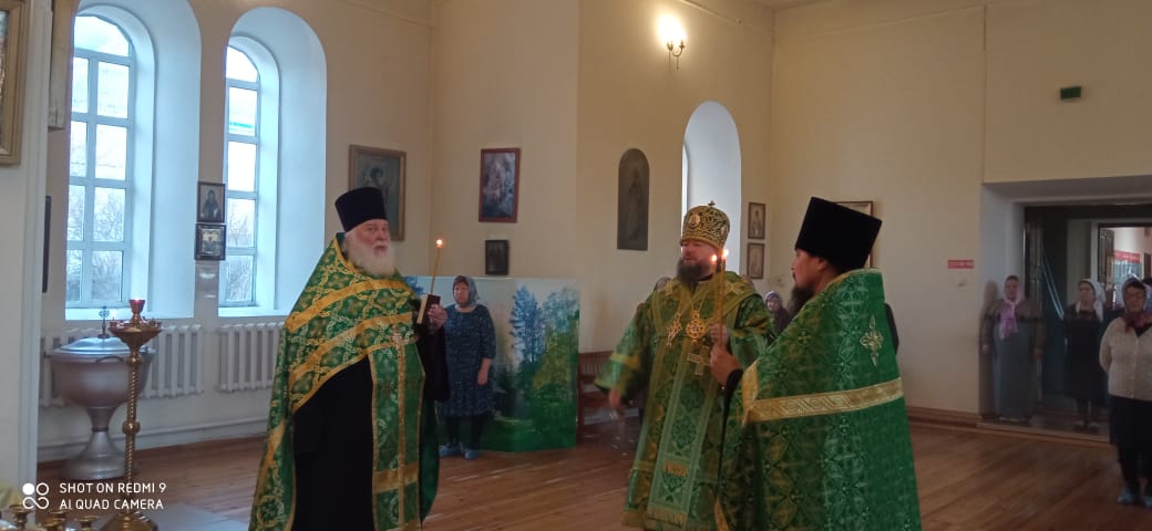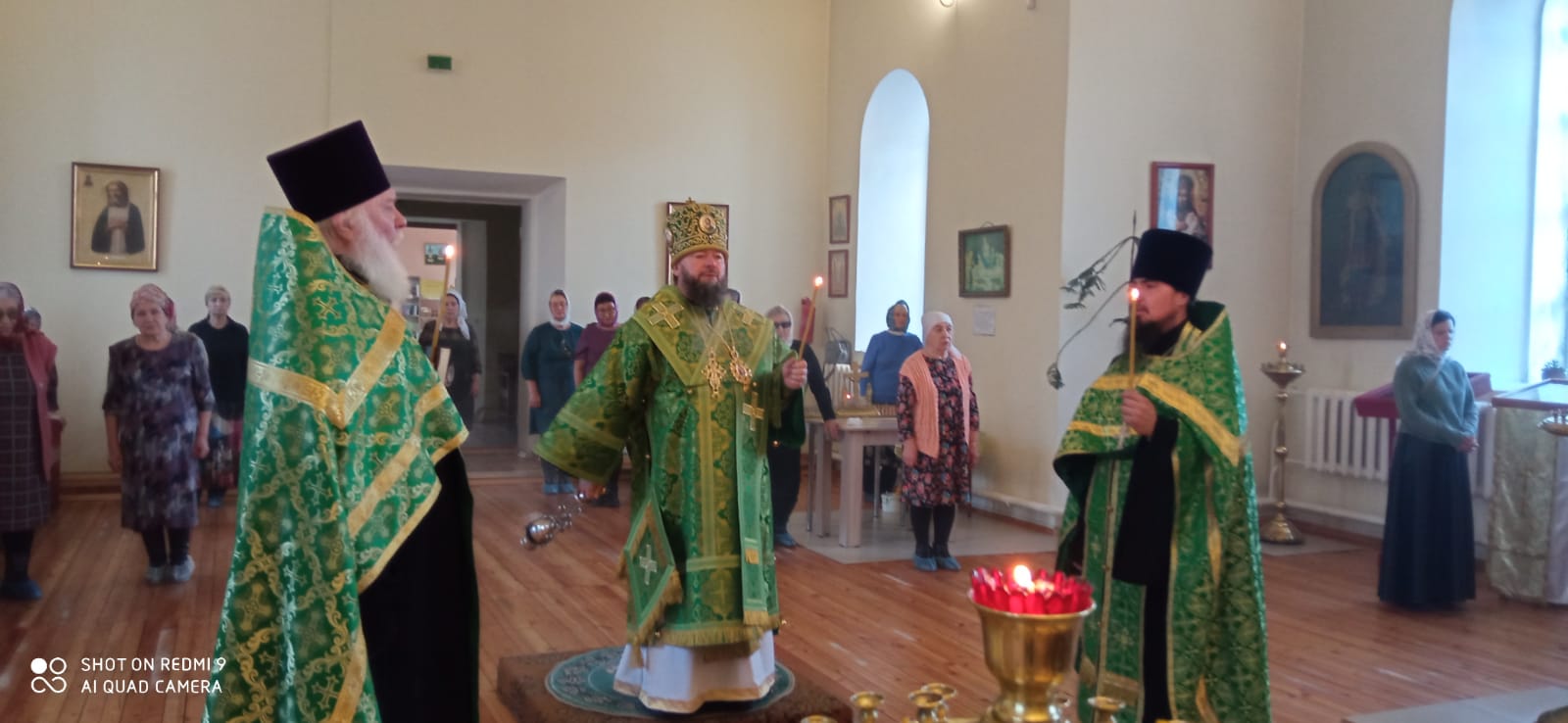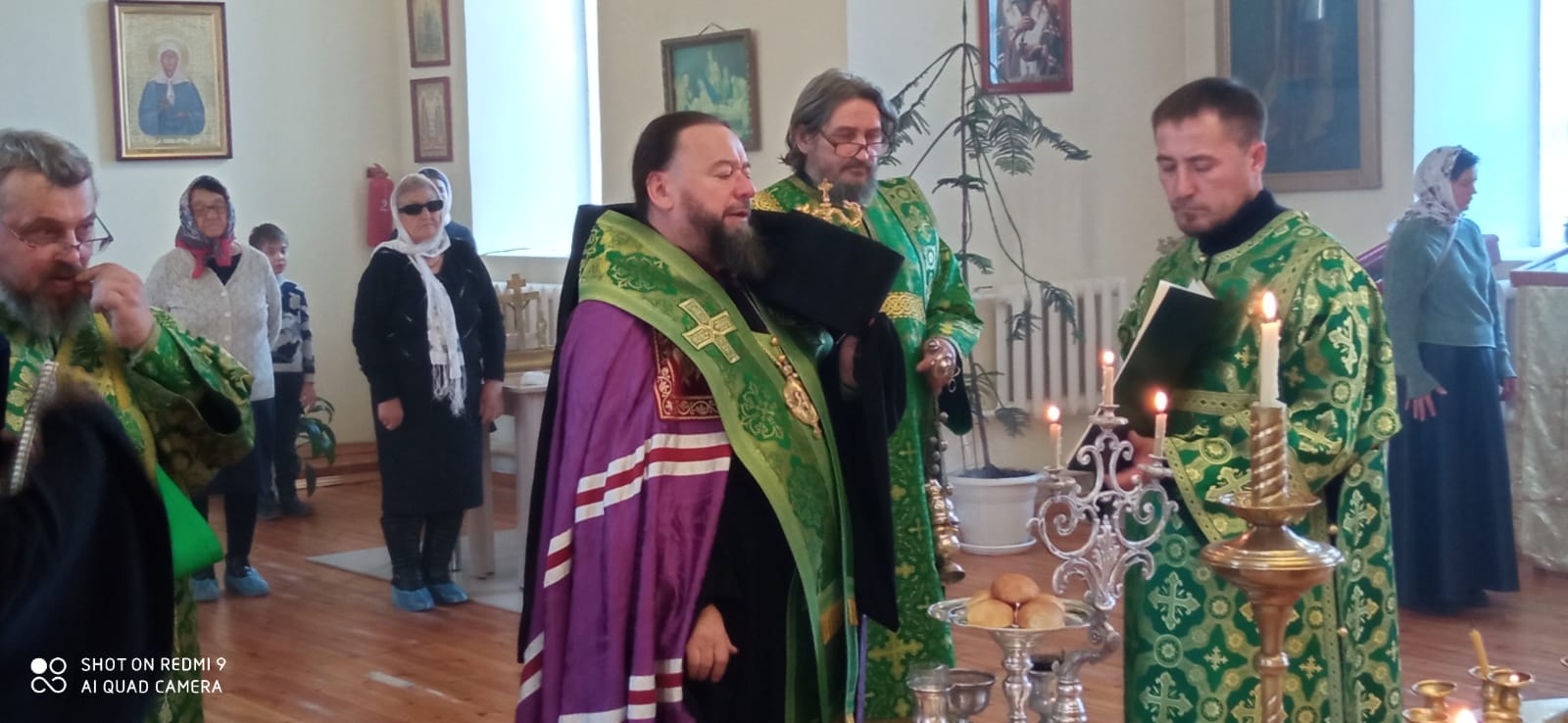 Его Преосвященству сослужили: настоятель храма святителя Николая Чудотворца в пгт. Агинское протоиерей Валерий Компаниец, ключарь кафедрального собора Воскресения Христова г. Нерчинска иерей Роман Пичуев.