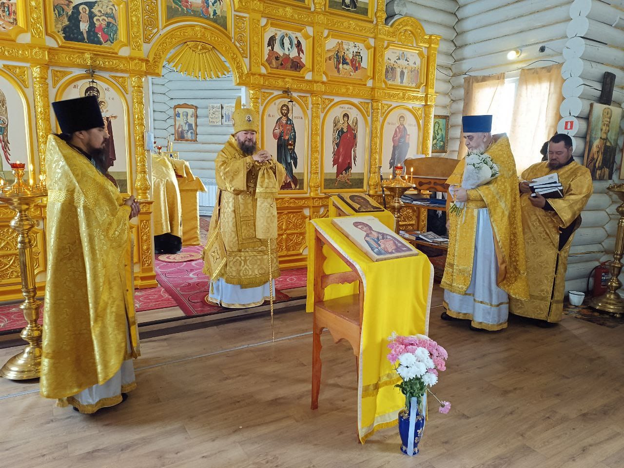 Его Преосвященству сослужили: настоятель храма апостола и евангелиста Луки г. Балей иерей Владислав Петров; ключарь кафедрального собора Воскресения Христова г. Нерчинск иерей Роман Пичуев.