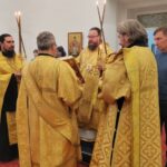 Во время всенощного бдения были совершены великая вечерня, лития с освящением хлебов, вина и елея, утреня с чтением Евангелия и помазанием всех молящихся освященным елеем.