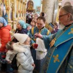 Во время всенощного бдения были совершены великая вечерня, лития с освящением хлебов, вина и елея, а также утреня с чтением Евангелия и помазанием молящихся освященным елеем.