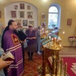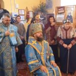 Его Преосвященству сослужили: настоятель храма Воскресения Христова с. Дульдурга протоиерей Валерий Компаниец; ключарь кафедрального собора Воскресения Христова г. Нерчинска иерей Роман Пичуев.
