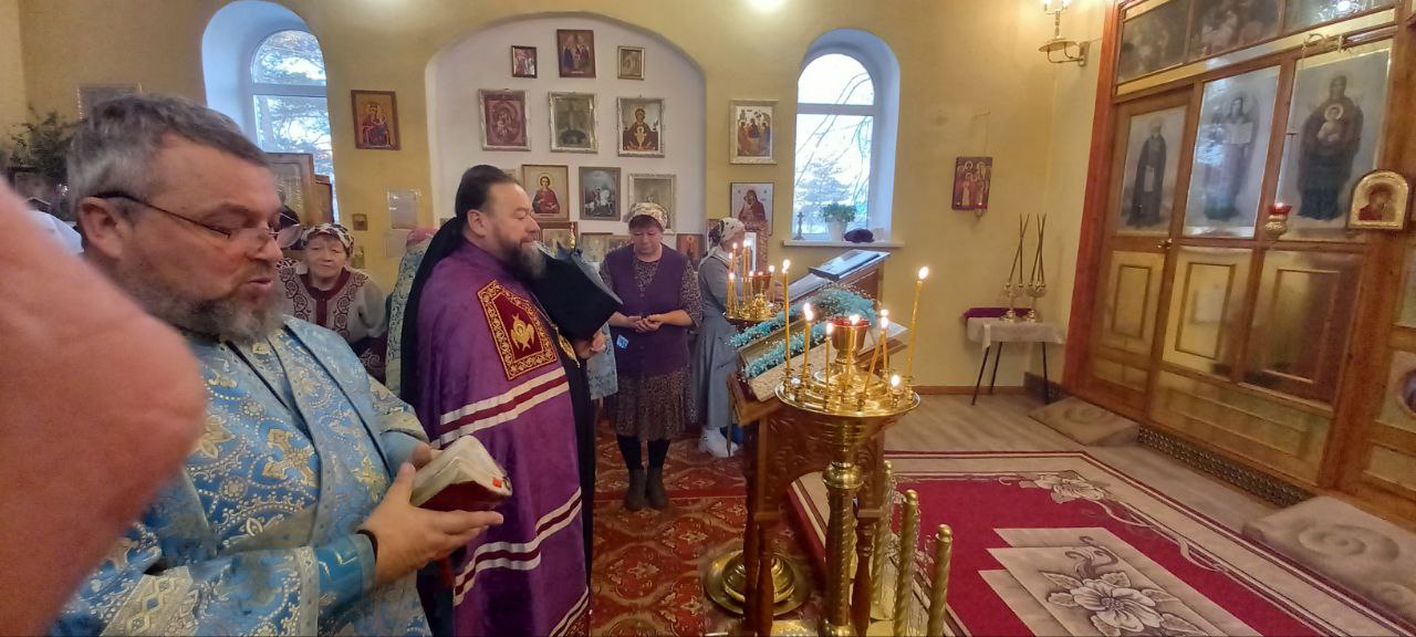 Его Преосвященству сослужили: настоятель храма Воскресения Христова с. Дульдурга протоиерей Валерий Компаниец; ключарь кафедрального собора Воскресения Христова г. Нерчинска иерей Роман Пичуев.