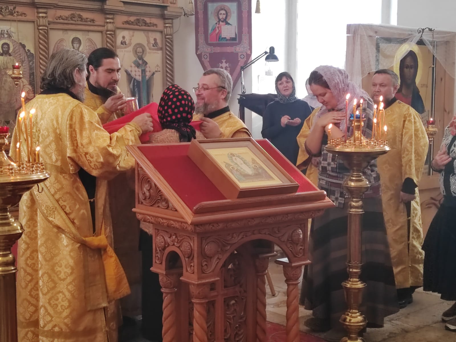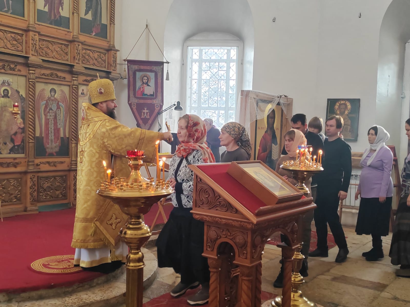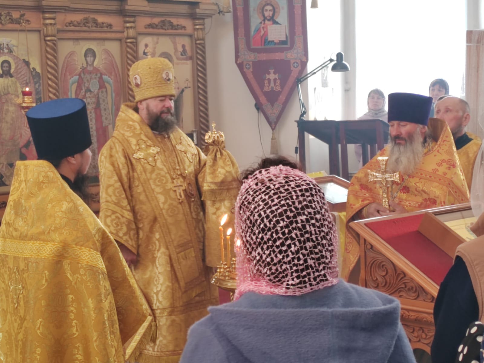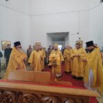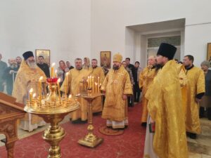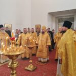 Его Преосвященству сослужили: настоятель храма святителя Николая Чудотворца пгт. Карымское иерей Валерий Шемелин; ключарь кафедрального собора Воскресения Христова г. Нерчинска иерей Роман Пичуев.