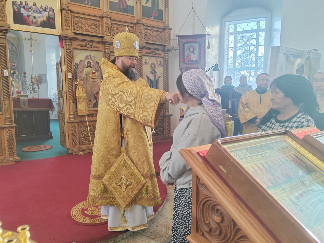 Его Преосвященству сослужил ключарь кафедрального собора Воскресения Христова г. Нерчинска иерей Роман Пичуев.