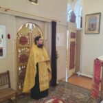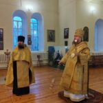 Его Преосвященству сослужили: настоятель храма святителя Николая Чудотворца в пгт. Агинское протоиерей Валерий Компаниец, ключарь кафедрального собора Воскресения Христова г. Нерчинска иерей Роман Пичуев.