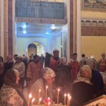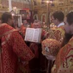 Во время всенощного бдения были совершены великая вечерня, лития с освящением хлебов, вина и елея, утреня с чтением Евангелия и помазанием всех молящихся освященным елеем.