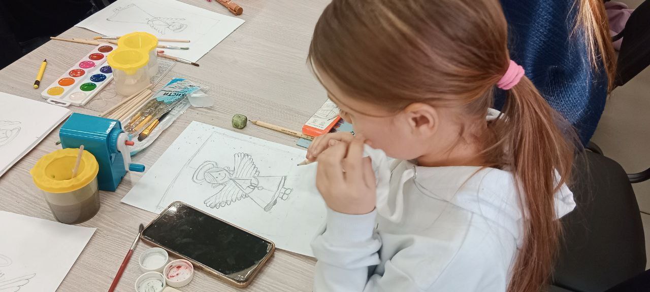 В ходе занятия педагог делилась с юными художниками секретами, которые помогут им не только создать изображения ангелов, но и развить свои художественные навыки. Т.В. Соколова рассказала детям как найти образ своего ангела, где брать вдохновение и как создать свою авторскую работу. Вместе с педагогом дети нарисовали ангелов.
