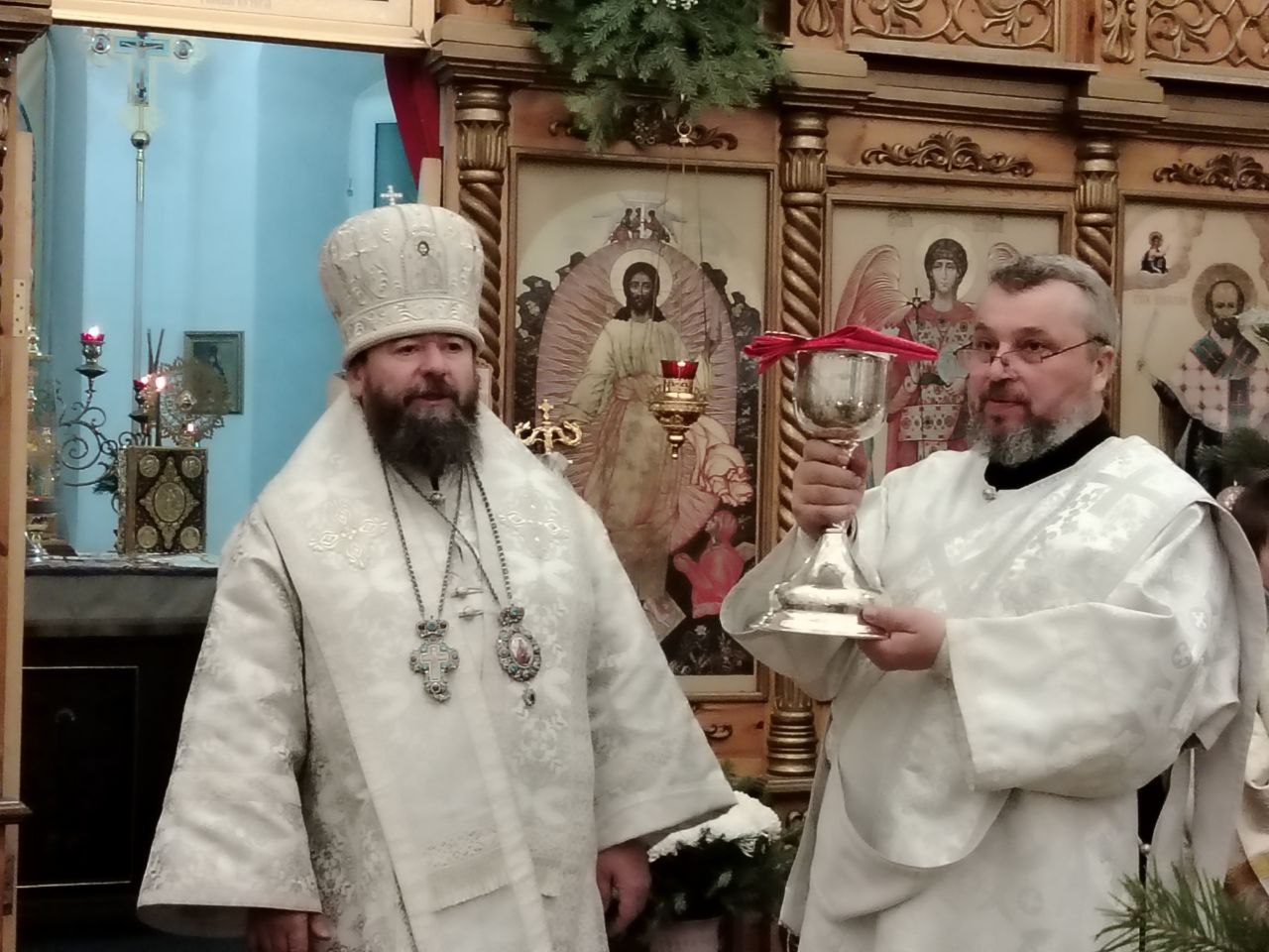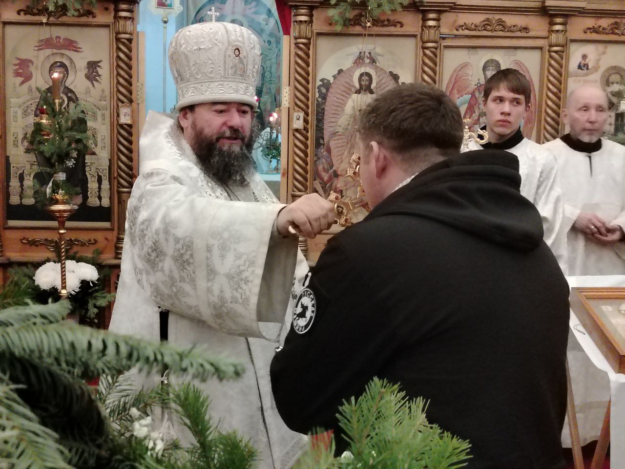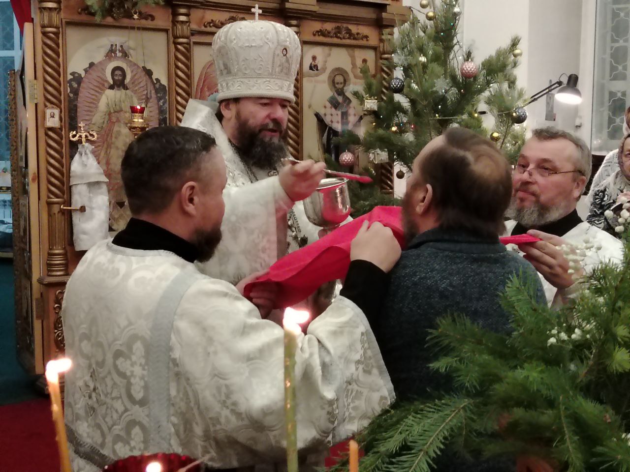 Перед причастием иерей Роман Пичуев огласил Рождественское послание Преосвященнейшего Макария, епископа Нерчинского и Краснокаменского боголюбивым пастырям, монашествующим и всем верным чадам Нерчинской епархии.