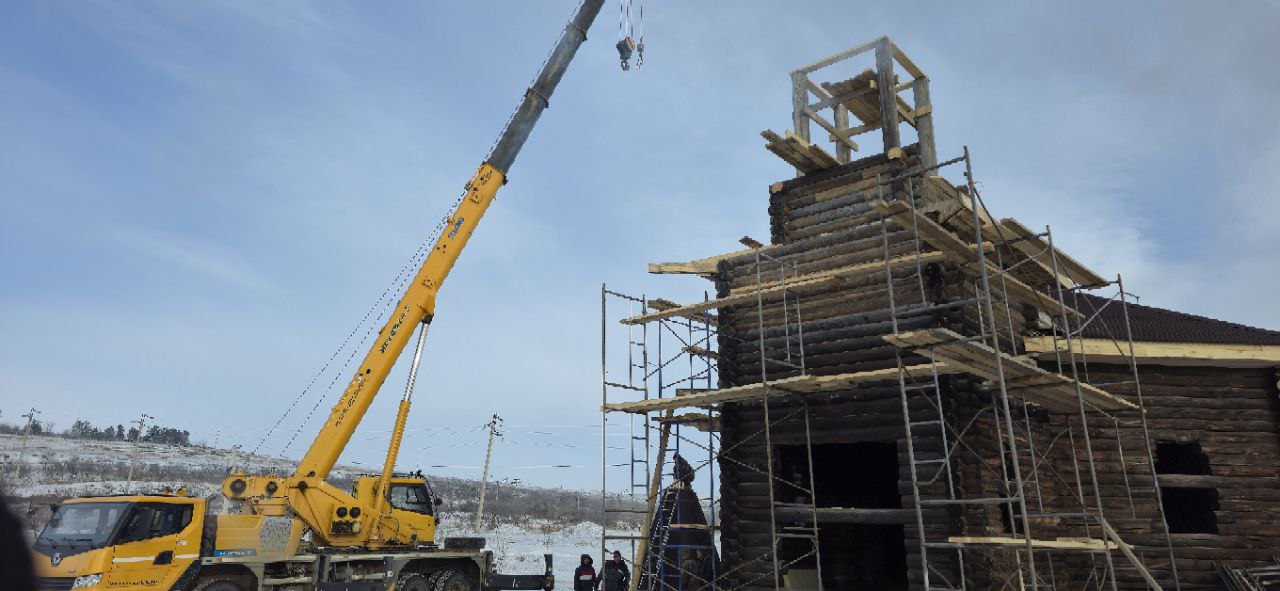 9 января 2026 года на строящийся храм Царственных страстотерпцев в селе Мирсаново Шилкинского района был установлен главный шатер на колокольню.