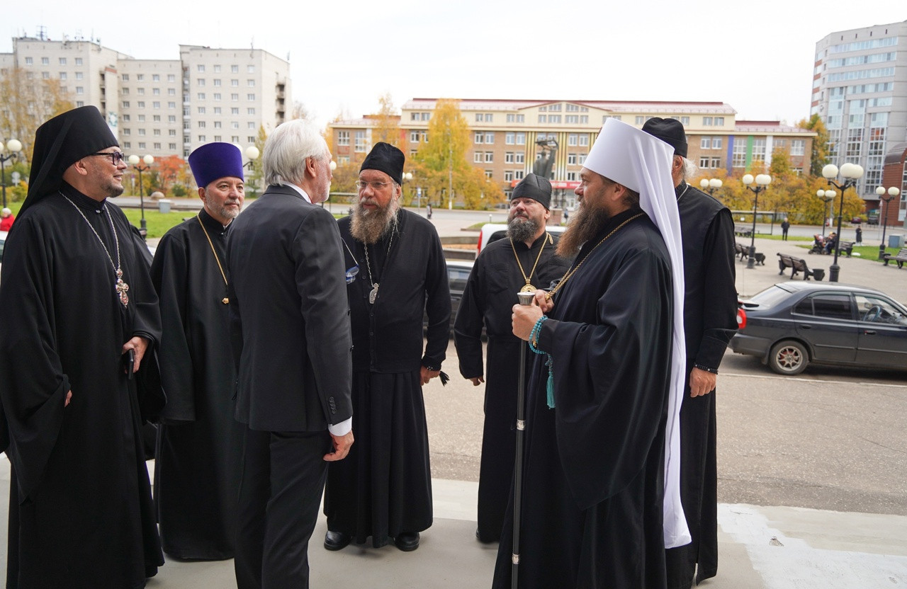 По приглашению главы Сыктывкарской митрополии епископ Макарий принимает участие в торжествах, посвященных 30-летию со дня образования Сыктывкарской епархии. 5 октября 2025 года на сцене театра оперы и балета Республики Коми в г. Сыктывкар состоялся торжественный концерт «Дорога добра», посвященный 30-летию со дня образования Сыктывкарской епархии. Перед началом концерта к собравшимся обратился с приветственным словом глава Сыктывкарской митрополии, митрополит Сыктывкарский и Коми-Зырянский Филипп. Владыка отметил историческую важность момента — возрождение церковной жизни на древней земле, просвещенной святителем Стефаном Пермским. Он подчеркнул, что за 30 лет трудами архиепископа Питирима, первого правящего архиерея, духовенства и мирян на земле Зырянского края расцвел духовный сад, свидетельствующий о живой вере народа. В зале присутствовали гости, прибывшие на торжества: митрополит Псковский и Порховский Матфей, митрополит Астраханский и Камызякский Никон, архиепископ Воркутинский и Усинский Марк, епископ Шуйский и Тейковский Иоанн, епископ Нерчинский и Краснокаменский Макарий. С поздравлениями от лица руководства Республики Коми выступили заместитель председателя Государственного совета Государственного Совета РК Сергей Вячеславович Артеев и министр национальной политики РК Роман Вениаминович Носков. Концертная программа, режиссером которой выступила Юлия Рулева, стала настоящим музыкальным путешествием по страницам истории епархии. Зрители смогли вспомнить путь возрождения Православия на Коми земле и насладиться красотой духовной поэзии и музыки. В исполнении сводного мужского хора Сыктывкарской епархии, хора и оркестра Театра оперы и балета, ансамбля «Асья кыа», Архиерейского хора Свято-Стефановского собора, а также детских и студенческих коллективов прозвучали как древние церковные песнопения, так и произведения на стихи архиепископа Питирима (Волочкова). Завершился вечер благодарственным исполнением «Многолетия» всеми участниками концерта, которое стало символом единства и молитвенной благодарности за 30 лет плодотворного служения Сыктывкарской епархии на благо жителей Республики Коми. Использованы материалы группы Сывтывкарской епархии в ВКонтакте ©Нерчинская епархия
