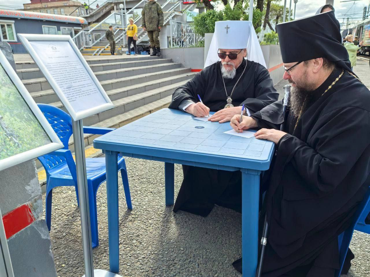 5 июня 2025 года в Чите встретили агитпоезд Минобороны РФ «Единство в памяти. Сила в подвиге». В экспозиции поезда-музея образцы техники времён Великой Отечественной войны, современное вооружение и трофейная техника, захваченная в ходе СВО. На перроне станции Чита-2 агитпоезд встречали митрополит Читинский и Петровск-Забайкальский Димитрий и епископ Нерчинский и Краснокаменский Макарий. Центральным событием встречи стал митинг, на котором митрополит Димитрий обратился к собравшимся. Он подчеркнул важность сохранения исторической памяти, передачи из поколения в поколение подвига наших предков. «Только помня о своих корнях и ценностях, мы способны противостоять внешним угрозам и сохранить наше Отечество», — сказал владыка Димитрий. Затем архиереи Забайкальской митрополии совершили молебен в одном из вагонов агитационного поезда перед иконой «Спас Нерукотворный». Епископ Макарий вознёс особую молитву об укреплении и сохранении жизни защитников Отечества. По окончании молебна митрополит Димитрий призвал всех присутствующих не жалеть помощи и поддержки нашим воинам, выразив твердую уверенность в Победе. ©Нерчинская епархия