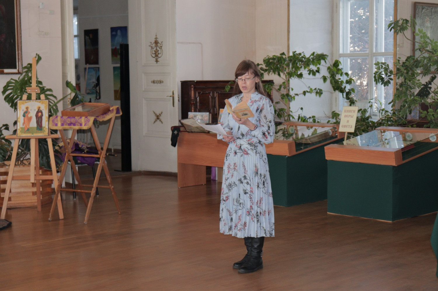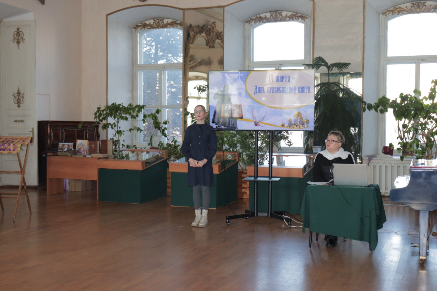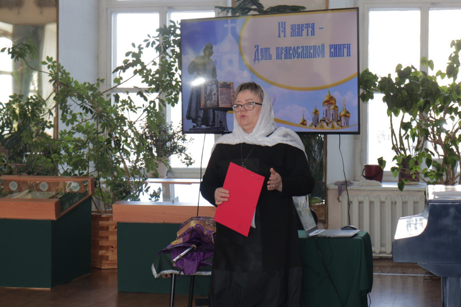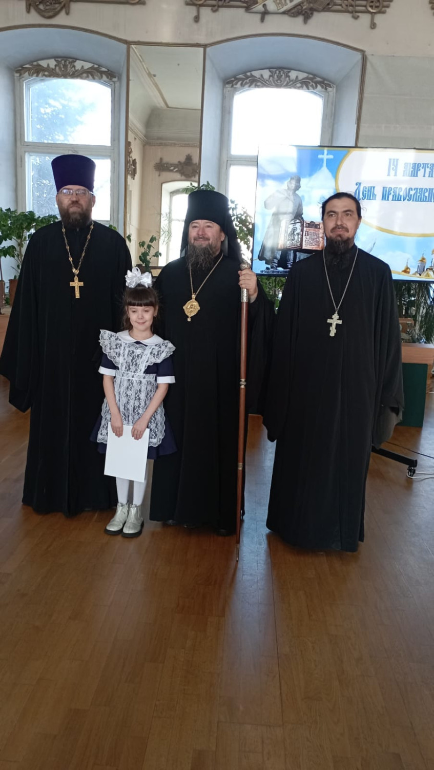 19 марта 2025 года в Нерчинском краеведческом музее состоялось мероприятие, приуроченное ко Дню православной книги — «Живое слово мудрости духовной». Перед началом мероприятия епископ Нерчинский и Краснокаменский Макарий совершил молебен на всякое доброе дело. По окончании молебна епископ Макарий обратился к присутствующим с приветственным словом. Он подчеркнул значимость православных книг в формировании духовной культуры и нравственных ценностей. Архипастырь отметил, что книги являются не только источником знаний, но и путеводителями по жизненному пути, помогающими людям находить ответы на важные вопросы, с которыми они сталкиваются. Владыка также рассказал о богатом наследии православной литературы, начиная от Святых Отцов и заканчивая современными авторами. Он призвал участников мероприятия активно читать и изучать православные книги, чтобы обогащать свои души и укреплять веру. В музее была оформлена выставка православной литературы, где центральное место заняли богослужебные книги на старославянском языке – «Библия», «Апостол», «Псалтирь». О назначении церковных книг, их содержании и оформлении рассказала насельница монастыря Всех святых в земле Русской просиявших в пгт. Атамановка Читинского района инокиня Игнатия (Дубинина). Ею были представлены книги, выпущенные в петровскую эпоху: «Апостол» 18 в., «Книга поучений и наставлений Иоанна Златоустаго и Святых Отцов» 17 в., «Пролог» в печати 18 века. Инокиня Игнатия также показала, как выглядело «Елисаветградское Евангелие» — рукописная книга 16 века. Научный сотрудник Нерчинского краеведческого музея Былкова Светлана Ивановна представила православные книги из фондов музея: «Типикон», «Часослов», «Молитвослов» и познакомила аудиторию с истоками Дня православной книги. Научный сотрудник Нерчинского краеведческого музея Хохлова Наталья Владимировна объяснила, почему богослужение неизменно совершается на церковнославянском языке. Учитель русского языка и литературы МОУ СОШ № 78 пгт. Чернышевск Туркина Александра Сергеевна рассказала слушателям об истории возникновения русского языка. Затем был проведен конкурс чтецов «Слово во Славу», на котором учащиеся школ г. Нерчинск, Нерчинского района и ученики школы №78 пгт. Чернышевск представили стихотворения в честь 80-летия Победы в Великой Отечественной войне и стихотворения духовной тематики. Было прочитано стихотворение, посвященное первопечатнику Ивану Фёдорову. В состав жюри вошли: епископ Нерчинский и Краснокаменский Макарий; руководитель Отдела религиозного образования и катехизации Нерчинской епархии протоиерей Андрей Кисов; руководитель епархиального Отдела по делам молодежи иерей Роман Пичуев; сотрудники музея. По окончании конкурса чтецов хор сотрудников музея исполнил народные песни. Все участники конкурса были награждены благодарственными письмами, грамотами и сладкими призами. По окончании мероприятия на память о встрече были сделаны совместные фотографии. ©Нерчинская епархия