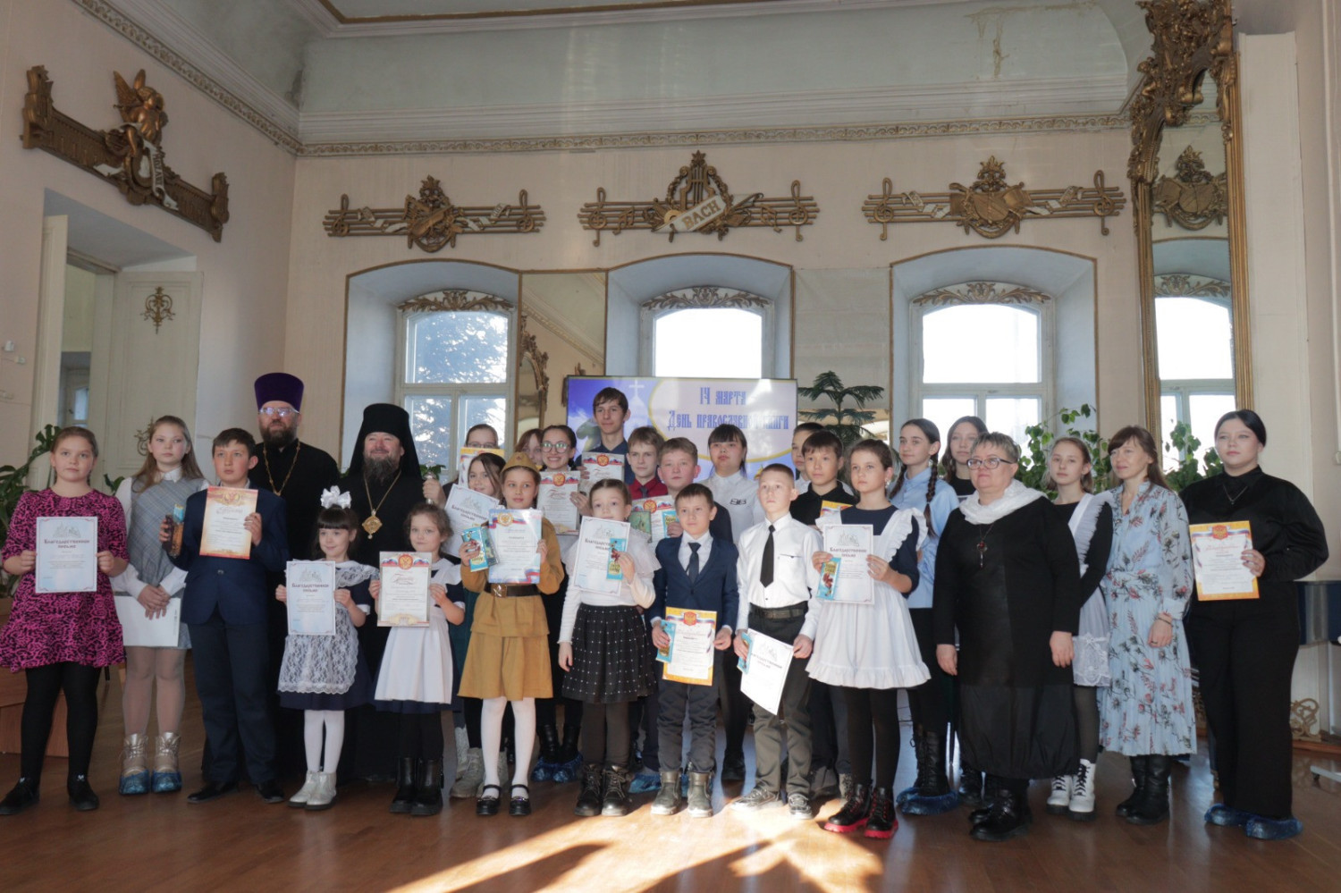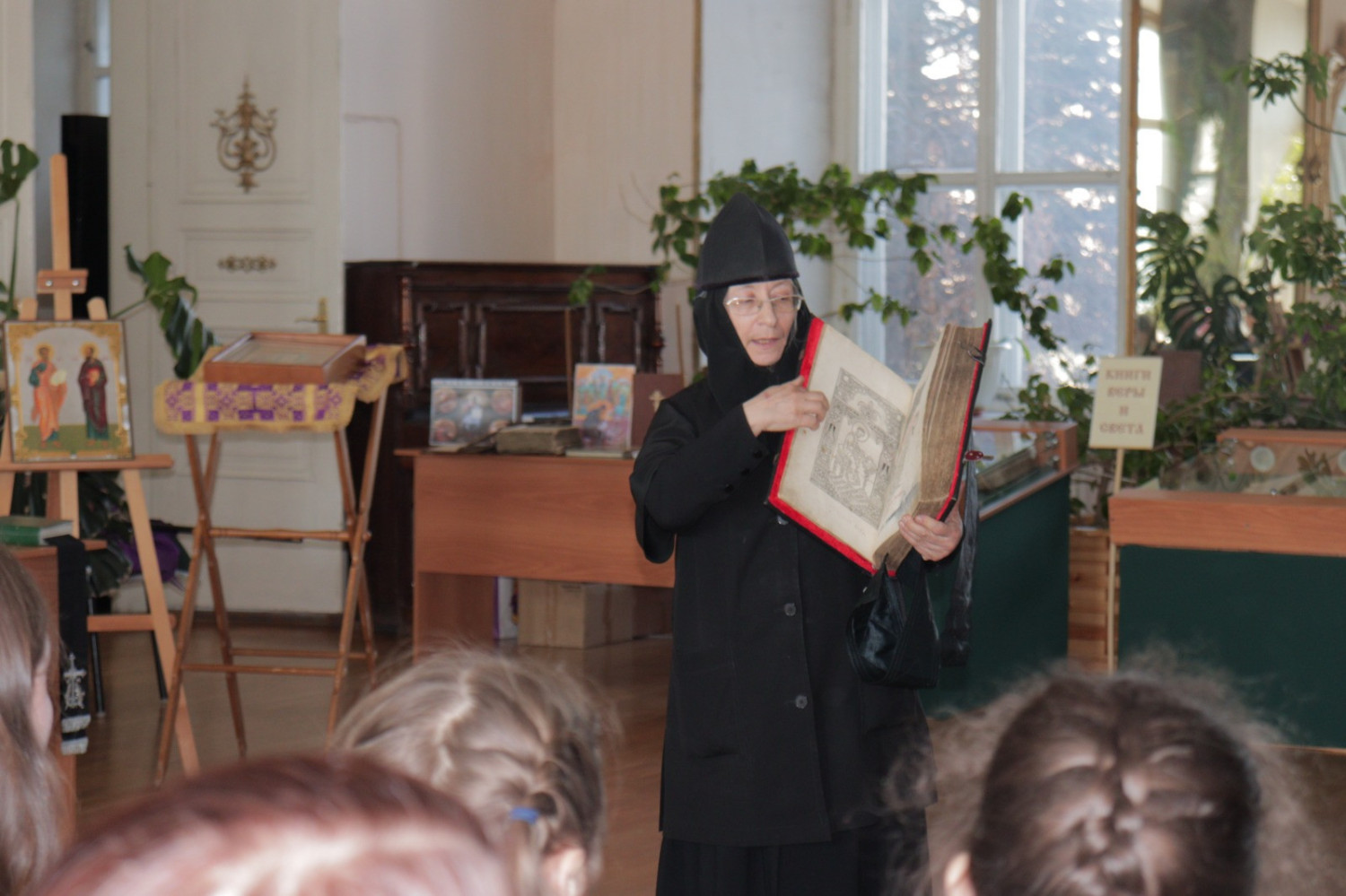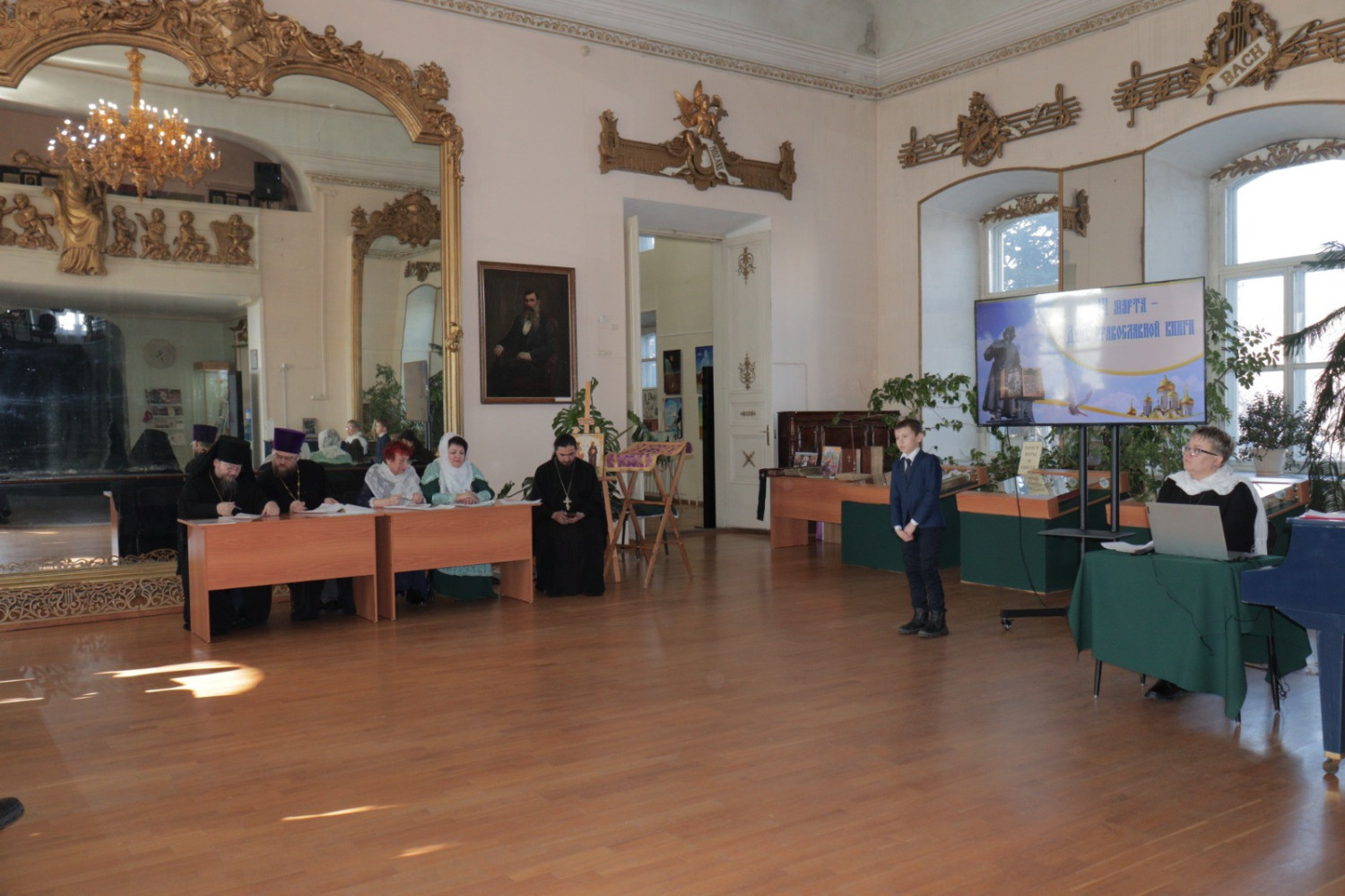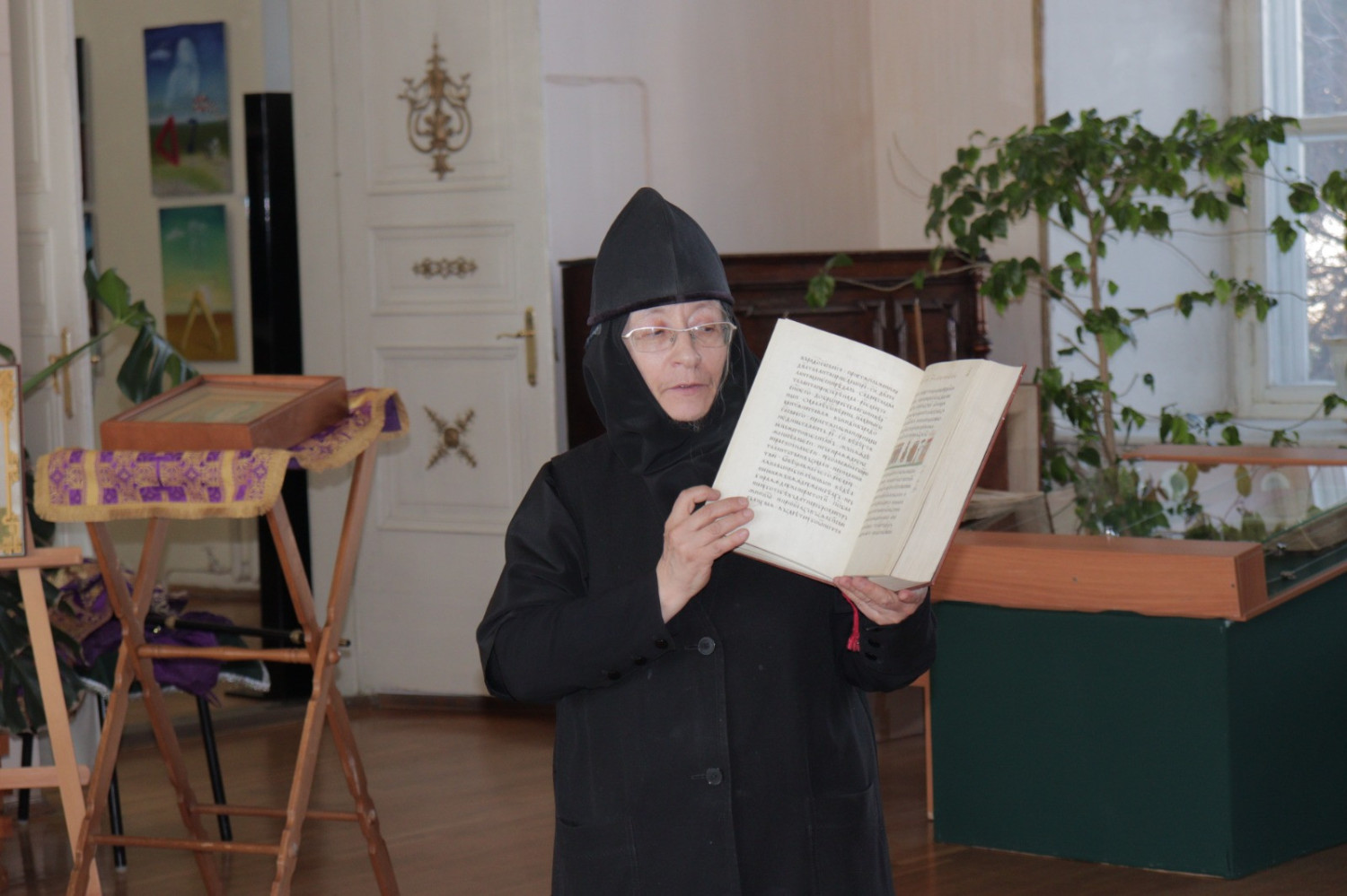 19 марта 2025 года в Нерчинском краеведческом музее состоялось мероприятие, приуроченное ко Дню православной книги — «Живое слово мудрости духовной». Перед началом мероприятия епископ Нерчинский и Краснокаменский Макарий совершил молебен на всякое доброе дело. По окончании молебна епископ Макарий обратился к присутствующим с приветственным словом. Он подчеркнул значимость православных книг в формировании духовной культуры и нравственных ценностей. Архипастырь отметил, что книги являются не только источником знаний, но и путеводителями по жизненному пути, помогающими людям находить ответы на важные вопросы, с которыми они сталкиваются. Владыка также рассказал о богатом наследии православной литературы, начиная от Святых Отцов и заканчивая современными авторами. Он призвал участников мероприятия активно читать и изучать православные книги, чтобы обогащать свои души и укреплять веру. В музее была оформлена выставка православной литературы, где центральное место заняли богослужебные книги на старославянском языке – «Библия», «Апостол», «Псалтирь». О назначении церковных книг, их содержании и оформлении рассказала насельница монастыря Всех святых в земле Русской просиявших в пгт. Атамановка Читинского района инокиня Игнатия (Дубинина). Ею были представлены книги, выпущенные в петровскую эпоху: «Апостол» 18 в., «Книга поучений и наставлений Иоанна Златоустаго и Святых Отцов» 17 в., «Пролог» в печати 18 века. Инокиня Игнатия также показала, как выглядело «Елисаветградское Евангелие» — рукописная книга 16 века. Научный сотрудник Нерчинского краеведческого музея Былкова Светлана Ивановна представила православные книги из фондов музея: «Типикон», «Часослов», «Молитвослов» и познакомила аудиторию с истоками Дня православной книги. Научный сотрудник Нерчинского краеведческого музея Хохлова Наталья Владимировна объяснила, почему богослужение неизменно совершается на церковнославянском языке. Учитель русского языка и литературы МОУ СОШ № 78 пгт. Чернышевск Туркина Александра Сергеевна рассказала слушателям об истории возникновения русского языка. Затем был проведен конкурс чтецов «Слово во Славу», на котором учащиеся школ г. Нерчинск, Нерчинского района и ученики школы №78 пгт. Чернышевск представили стихотворения в честь 80-летия Победы в Великой Отечественной войне и стихотворения духовной тематики. Было прочитано стихотворение, посвященное первопечатнику Ивану Фёдорову. В состав жюри вошли: епископ Нерчинский и Краснокаменский Макарий; руководитель Отдела религиозного образования и катехизации Нерчинской епархии протоиерей Андрей Кисов; руководитель епархиального Отдела по делам молодежи иерей Роман Пичуев; сотрудники музея. По окончании конкурса чтецов хор сотрудников музея исполнил народные песни. Все участники конкурса были награждены благодарственными письмами, грамотами и сладкими призами. По окончании мероприятия на память о встрече были сделаны совместные фотографии. ©Нерчинская епархия