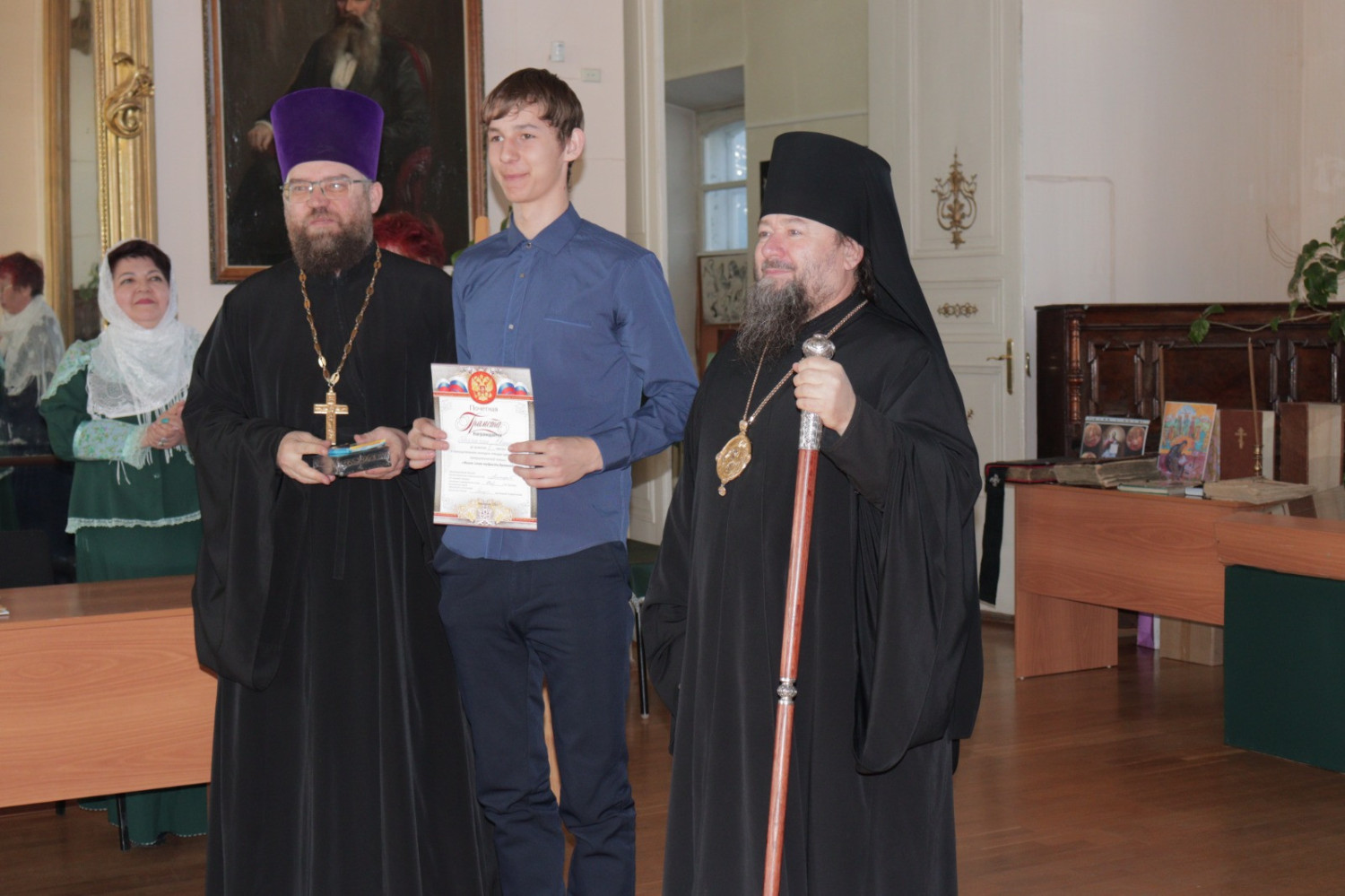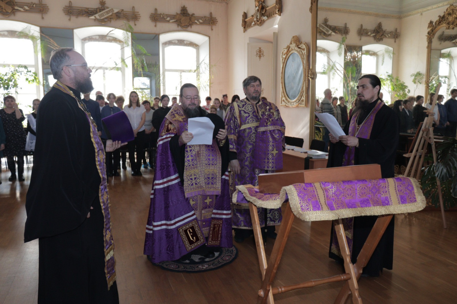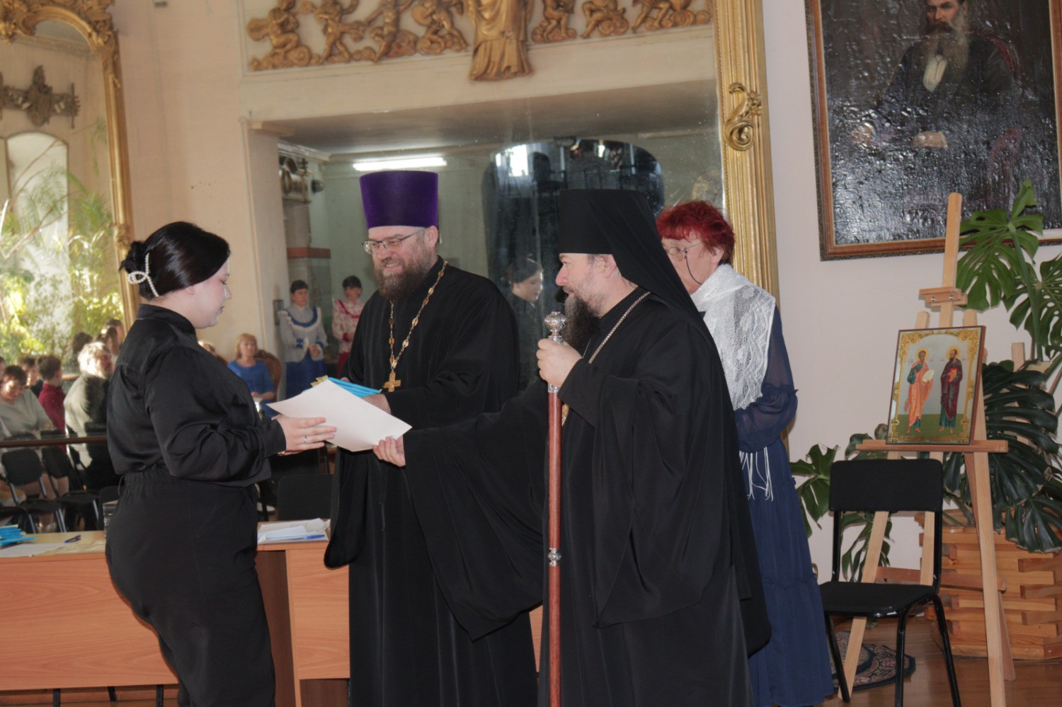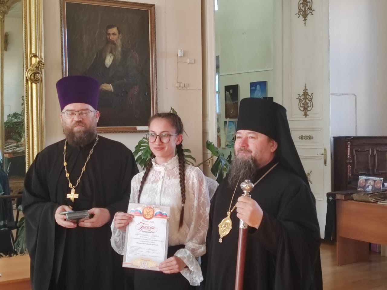 19 марта 2025 года в Нерчинском краеведческом музее состоялось мероприятие, приуроченное ко Дню православной книги — «Живое слово мудрости духовной». Перед началом мероприятия епископ Нерчинский и Краснокаменский Макарий совершил молебен на всякое доброе дело. По окончании молебна епископ Макарий обратился к присутствующим с приветственным словом. Он подчеркнул значимость православных книг в формировании духовной культуры и нравственных ценностей. Архипастырь отметил, что книги являются не только источником знаний, но и путеводителями по жизненному пути, помогающими людям находить ответы на важные вопросы, с которыми они сталкиваются. Владыка также рассказал о богатом наследии православной литературы, начиная от Святых Отцов и заканчивая современными авторами. Он призвал участников мероприятия активно читать и изучать православные книги, чтобы обогащать свои души и укреплять веру. В музее была оформлена выставка православной литературы, где центральное место заняли богослужебные книги на старославянском языке – «Библия», «Апостол», «Псалтирь». О назначении церковных книг, их содержании и оформлении рассказала насельница монастыря Всех святых в земле Русской просиявших в пгт. Атамановка Читинского района инокиня Игнатия (Дубинина). Ею были представлены книги, выпущенные в петровскую эпоху: «Апостол» 18 в., «Книга поучений и наставлений Иоанна Златоустаго и Святых Отцов» 17 в., «Пролог» в печати 18 века. Инокиня Игнатия также показала, как выглядело «Елисаветградское Евангелие» — рукописная книга 16 века. Научный сотрудник Нерчинского краеведческого музея Былкова Светлана Ивановна представила православные книги из фондов музея: «Типикон», «Часослов», «Молитвослов» и познакомила аудиторию с истоками Дня православной книги. Научный сотрудник Нерчинского краеведческого музея Хохлова Наталья Владимировна объяснила, почему богослужение неизменно совершается на церковнославянском языке. Учитель русского языка и литературы МОУ СОШ № 78 пгт. Чернышевск Туркина Александра Сергеевна рассказала слушателям об истории возникновения русского языка. Затем был проведен конкурс чтецов «Слово во Славу», на котором учащиеся школ г. Нерчинск, Нерчинского района и ученики школы №78 пгт. Чернышевск представили стихотворения в честь 80-летия Победы в Великой Отечественной войне и стихотворения духовной тематики. Было прочитано стихотворение, посвященное первопечатнику Ивану Фёдорову. В состав жюри вошли: епископ Нерчинский и Краснокаменский Макарий; руководитель Отдела религиозного образования и катехизации Нерчинской епархии протоиерей Андрей Кисов; руководитель епархиального Отдела по делам молодежи иерей Роман Пичуев; сотрудники музея. По окончании конкурса чтецов хор сотрудников музея исполнил народные песни. Все участники конкурса были награждены благодарственными письмами, грамотами и сладкими призами. По окончании мероприятия на память о встрече были сделаны совместные фотографии. ©Нерчинская епархия