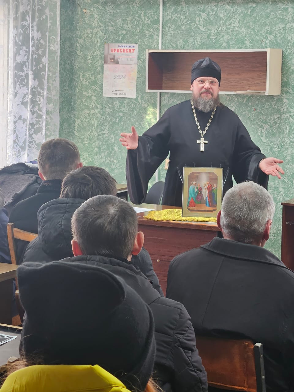 18 февраля 2025 года секретарь Нерчинской епархии игумен Симеон (Зимняков) посетил филиал по Краснокаменскому району Федерального казенного учреждения «Уголовно-исполнительная инспекция Управления Федеральной службы исполнения наказаний России по Забайкальскому краю». Священнослужитель провел беседу с условно-осужденными, состоящими на учете в филиале. В беседе игумен Симеон рассказал о празднике Сретения Господня и объяснил, как этот праздник напоминает о важности встречи с Богом в нашей жизни и о том, как каждый из нас может стремиться к духовному обновлению и покаянию. Также священник зачитал послание Святейшего Патриарха Кирилла ко Дню православной молодежи. В ходе беседы игумен Симеон также отвечал на вопросы присутствующих, делясь с ними духовными наставлениями. Он призвал их не терять надежду и веру в себя, даже находясь в сложных жизненных обстоятельствах. Священнослужитель отметил, что каждый человек способен на изменения, если он искренне стремится к этому и открывает свое сердце Богу. ©Нерчинская епархия