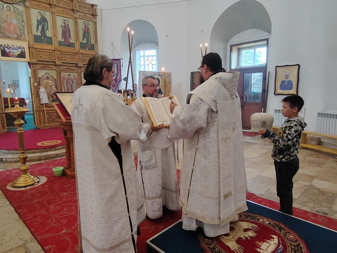 В канун дня воспоминания чуда Архистратига Михаила в Хонех архипастырь совершил полиелейное богослужение в Воскресенском кафедральном соборе в Нерчинске