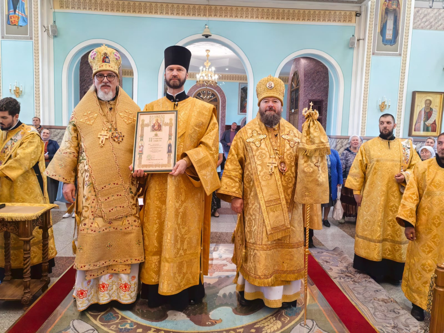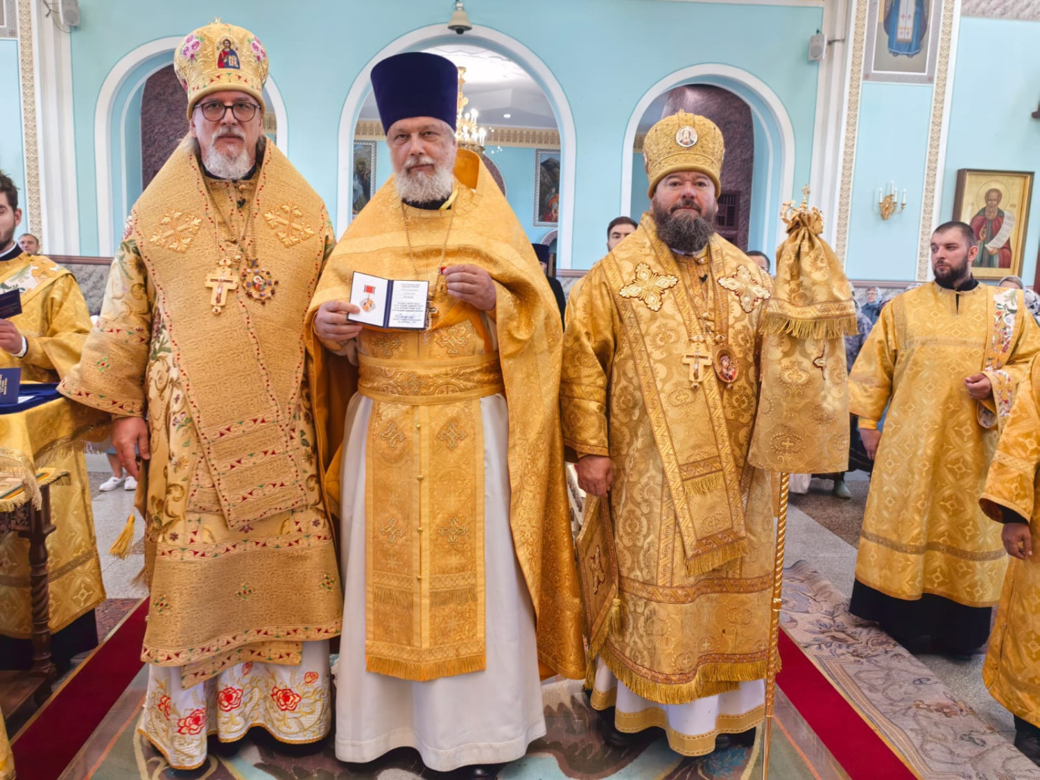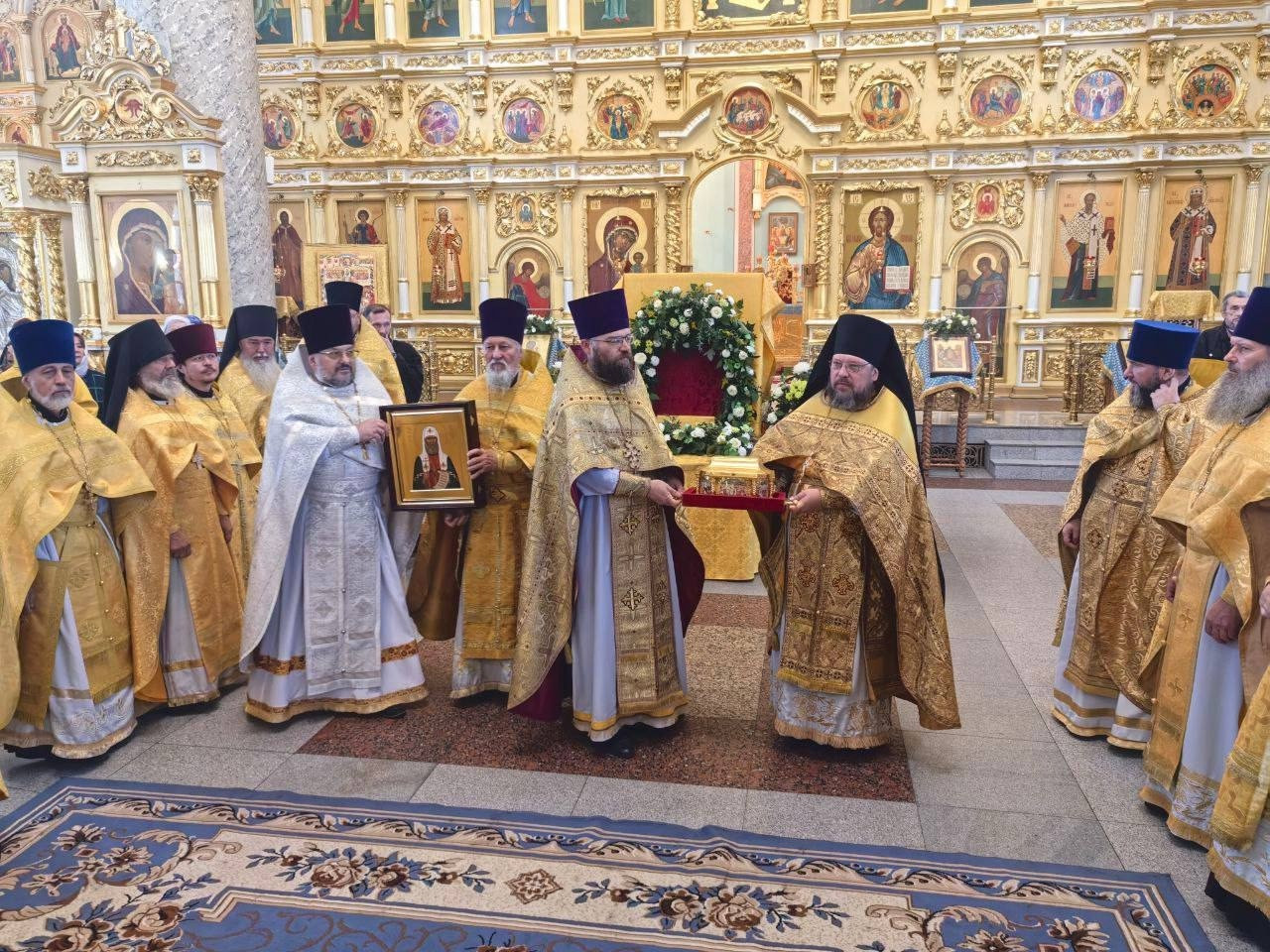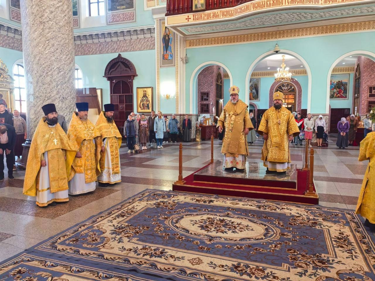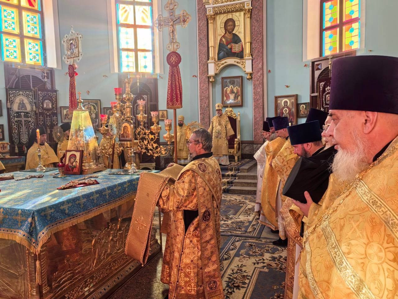 3 сентября 2025 года, в среду седмицы 13-й по Пятидесятнице, митрополит Читинский и Петровск-Забайкальский Димитрий и епископ Нерчинский и Краснокаменский Макарий совершили Божественную литургию в кафедральном соборе Казанской иконы Божией Матери в Чите. Богослужение совершалось перед ковчегом с частицей мощей святителя Тихона, Патриарха Московского и всея России. Архипастырям сослужили: настоятель храма святых новомучеников и исповедников Российских в Бутово протоиерей Кирилл Каледа (Московская городская епархия), духовенство Читинской и Нерчинской епархий. Богослужебные песнопения исполнил хор Казанского кафедрального собора города Читы. На Литургии по благословению Святейшего Патриарха Московского и всея Руси Кирилла на сугубой ектении были вознесены особые прошения и молитва о Святой Руси. Проповедь перед причастием произнес настоятель Князе-Владимирского храма г. Хилок — иеромонах Тихон (Каськов) (Читинская епархия). После отпуста Литургии был совершен крестный ход с ковчегом с частицей мощей святителя Тихона, Патриарха Московского и всея России вокруг Казанского кафедрального собора. По завершении крестного хода глава Забайкальской митрополии обратился к молящимся и поблагодарил епископа Макария вместе с клиром Нерчинской епархии за радость совместного богослужения. Также особую благодарность владыка Димитрий выразил всем тем, кто причастен к принесению святых мощей угодника Божия Тихона, Патриарха Московского и всея Руси в Забайкалье. ©Нерчинская епархия