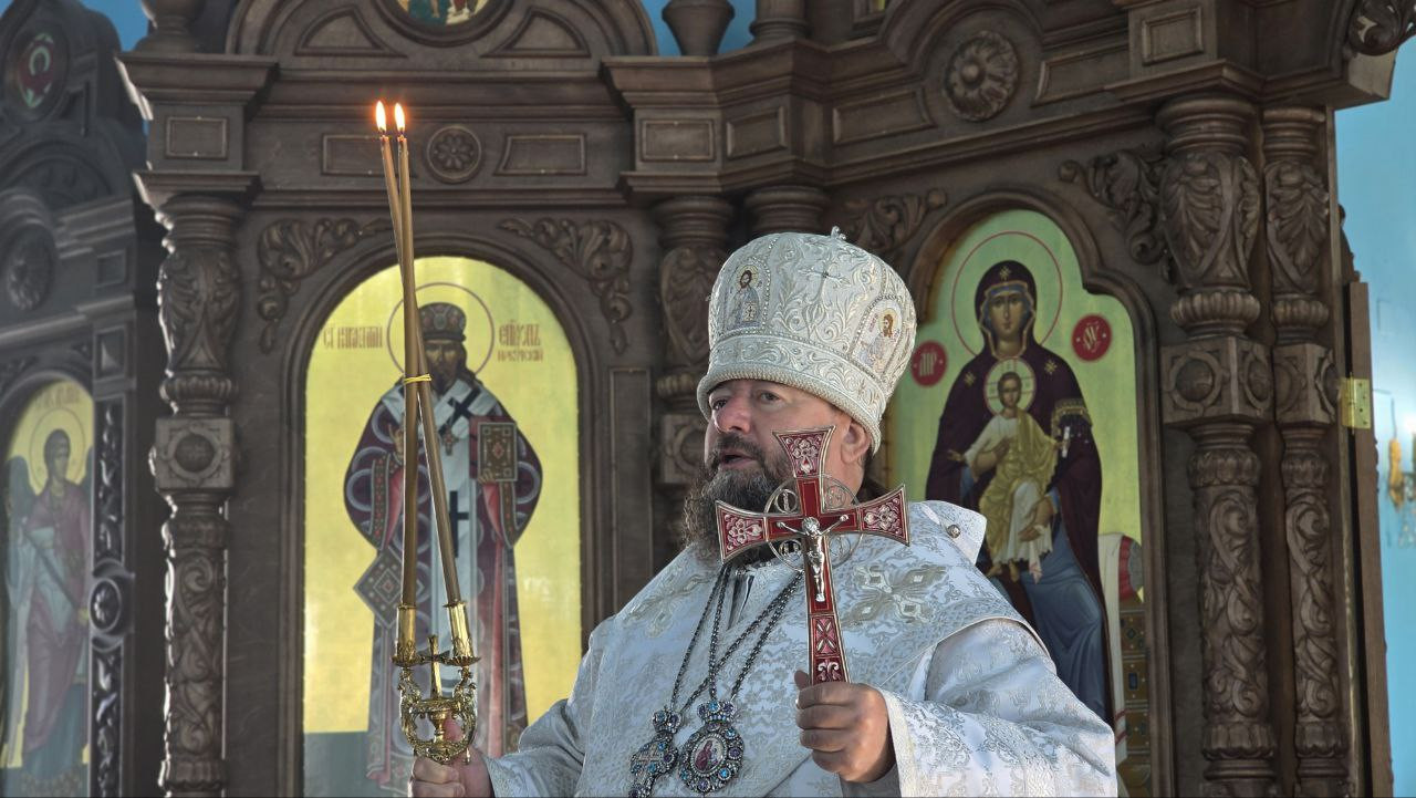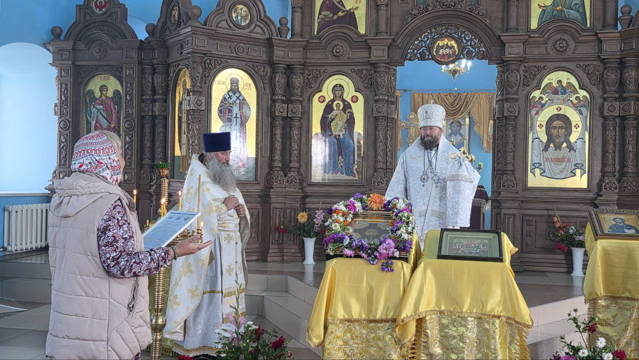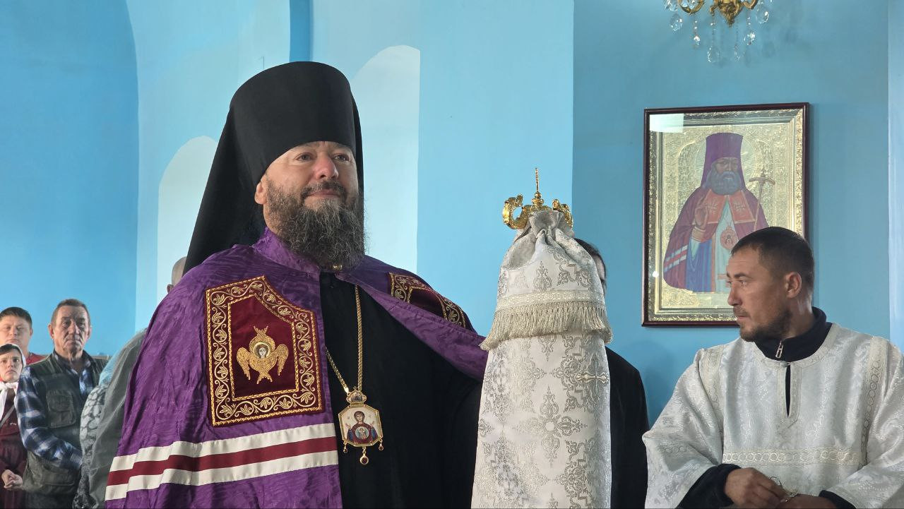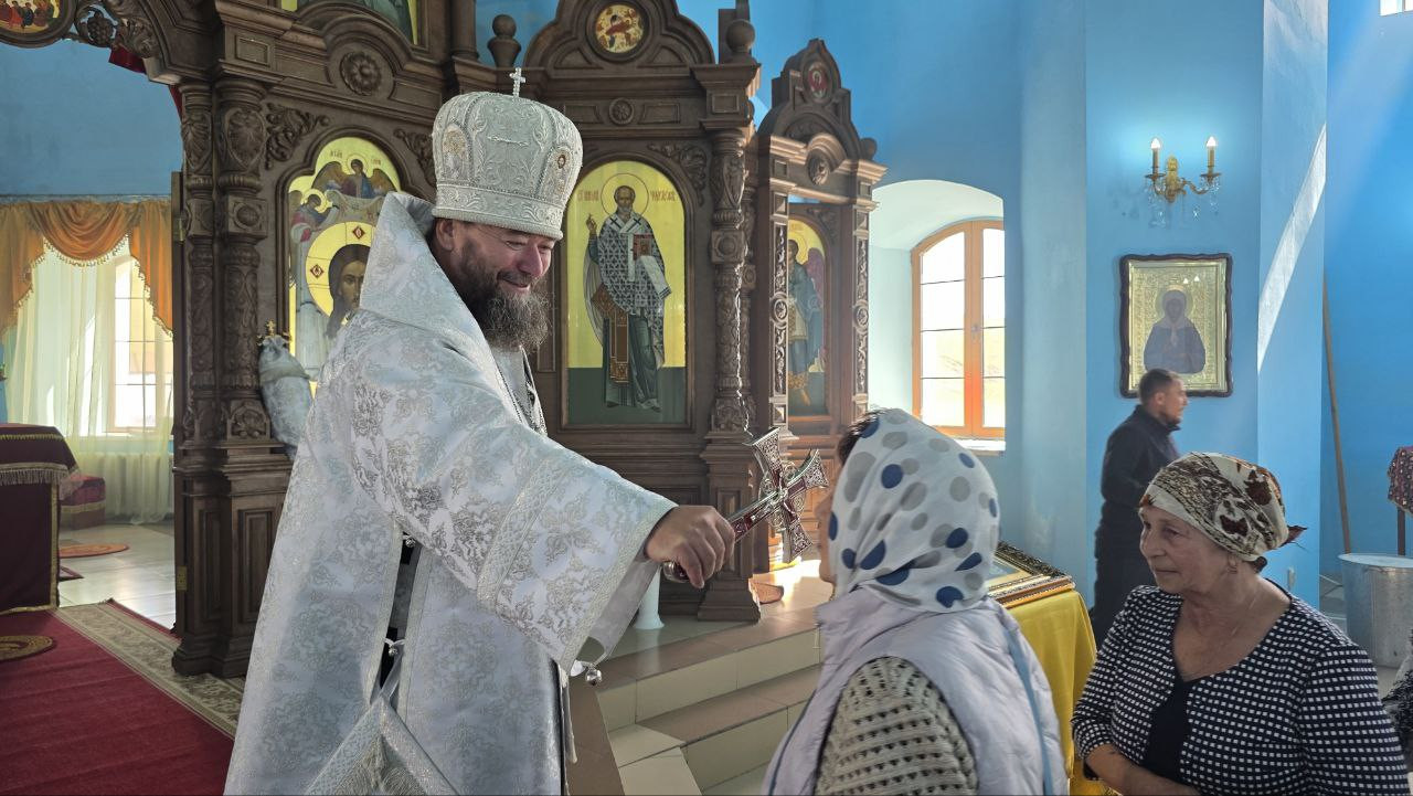В день краевого фестиваля традиционных ценностей «Хлебный Спас» епископ Макарий совершил Литургию в храме Спаса Нерукотворного Образа в селе Курлыч