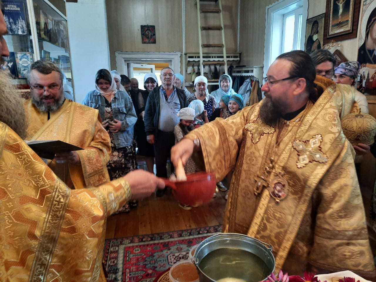 В праздник Происхождения Честных Древ Животворящего Креста епископ Макарий совершил Литургию в храме Воздвижения Креста Господня в селе Тунгокочен