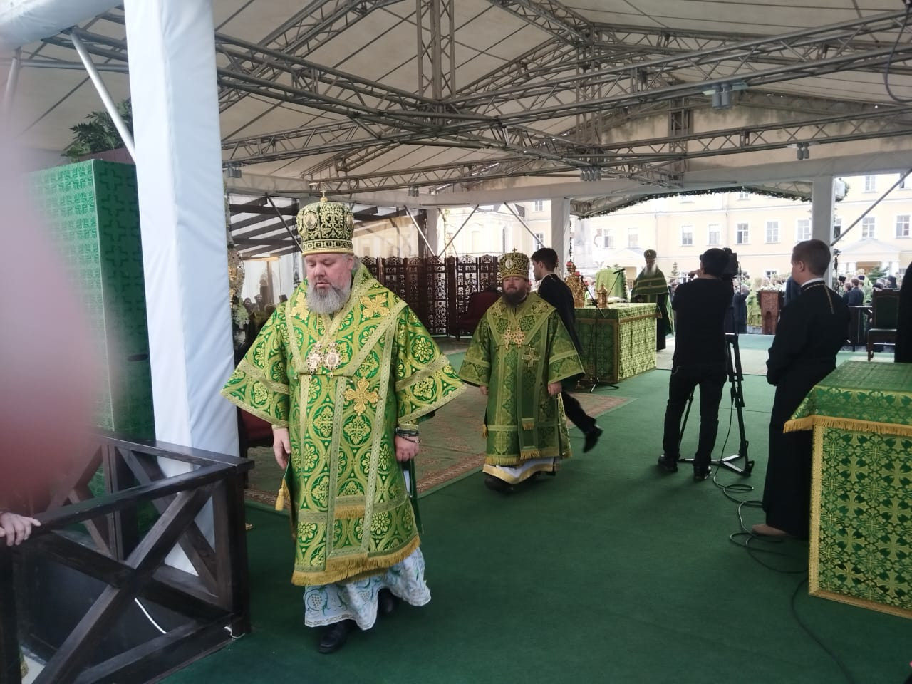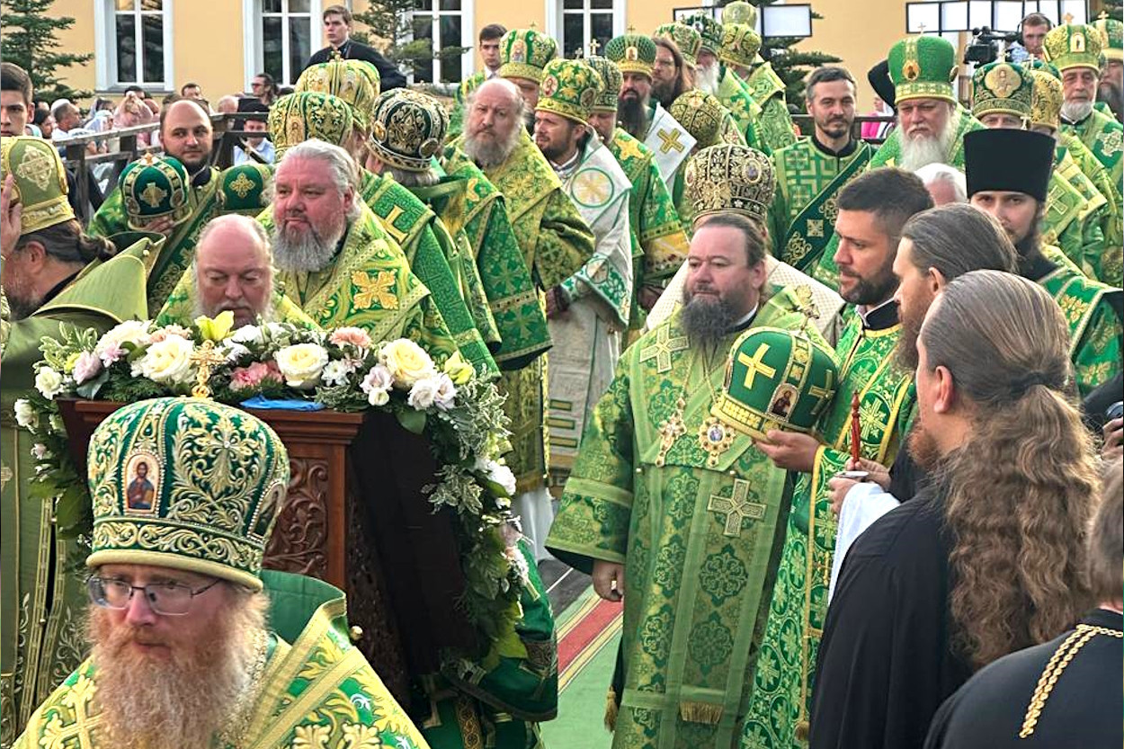 В канун дня обретения мощей преподобного Сергия, игумена Радонежского, епископ Макарий сослужил Святейшему Патриарху Кириллу