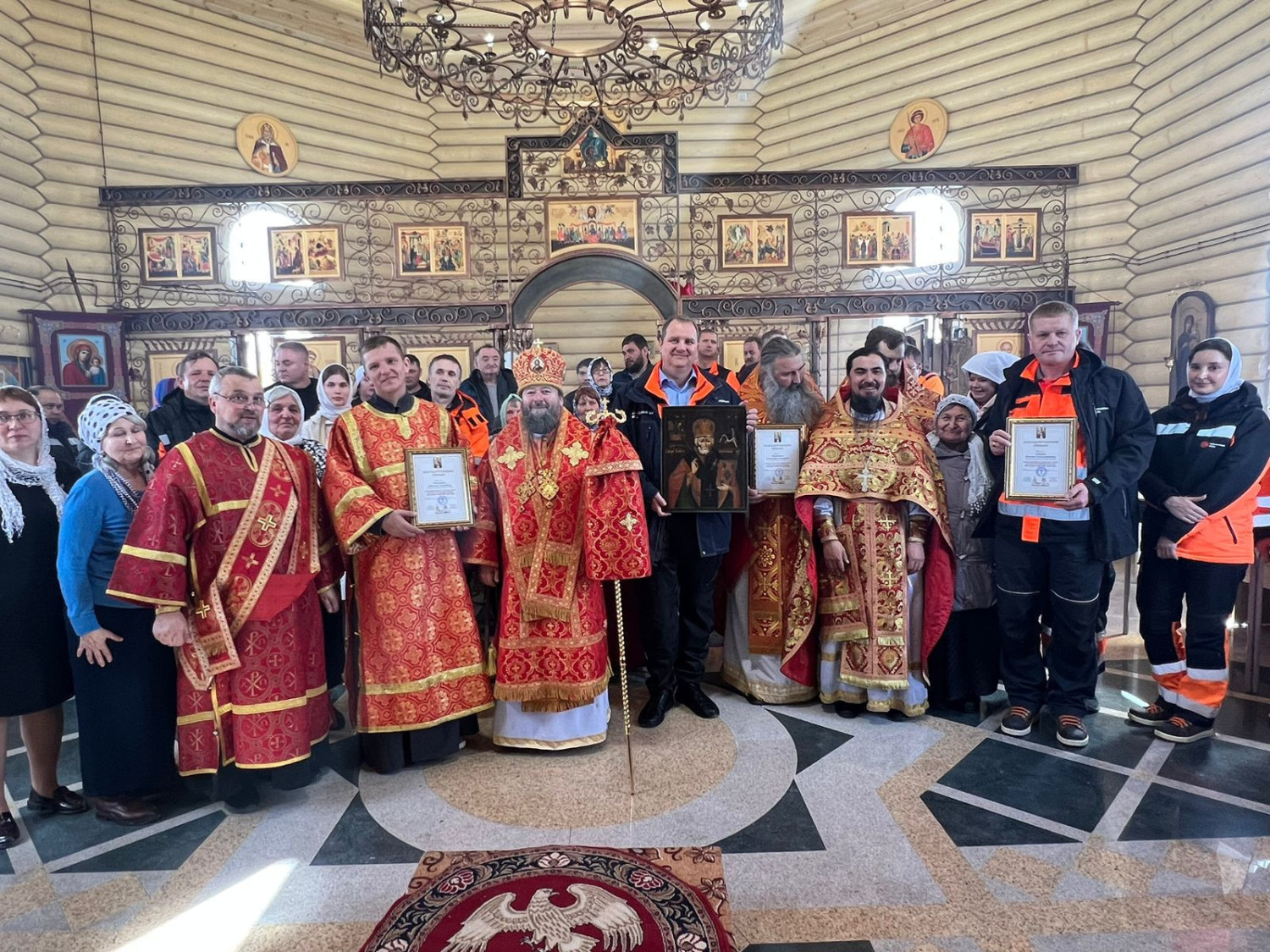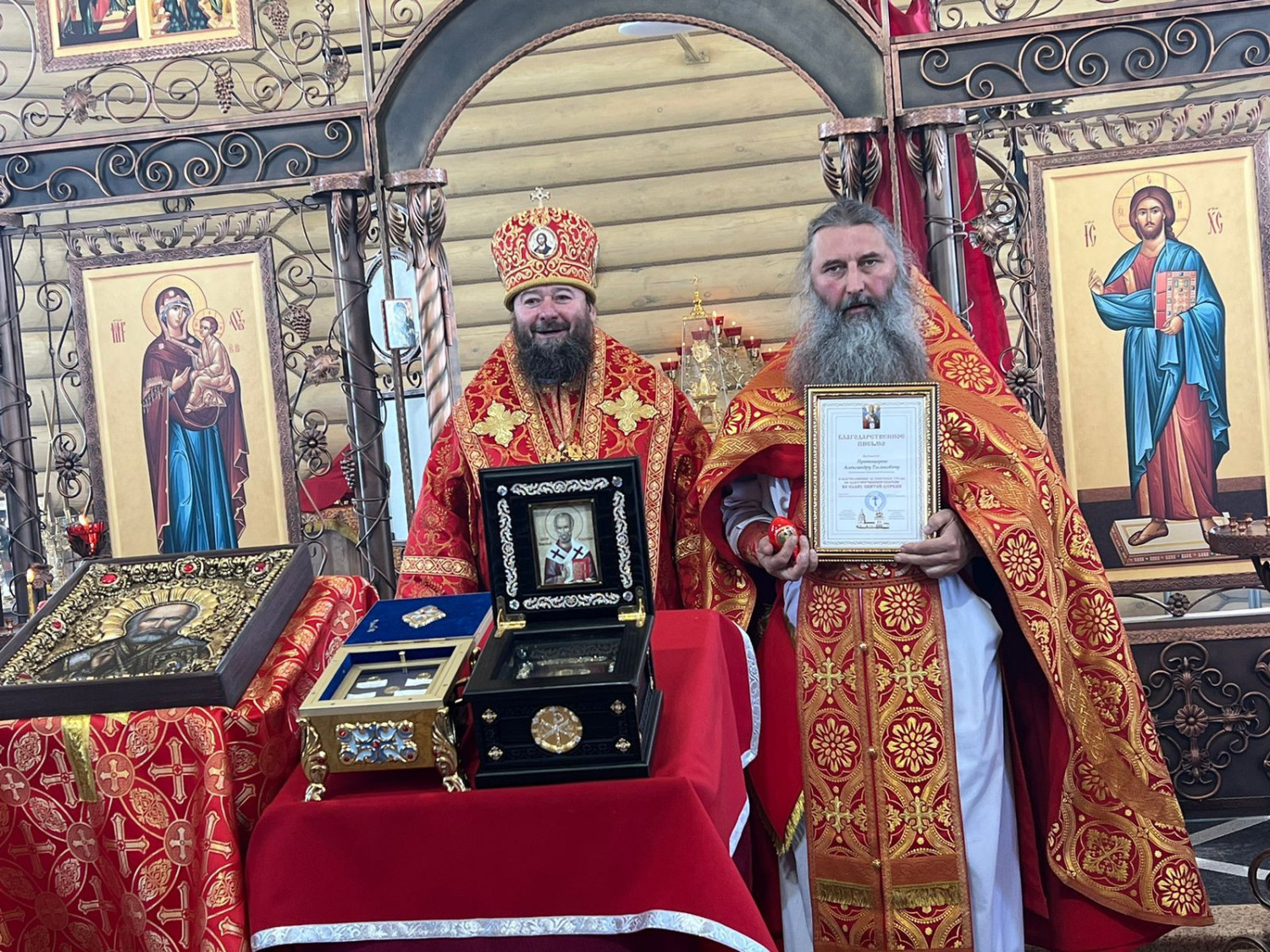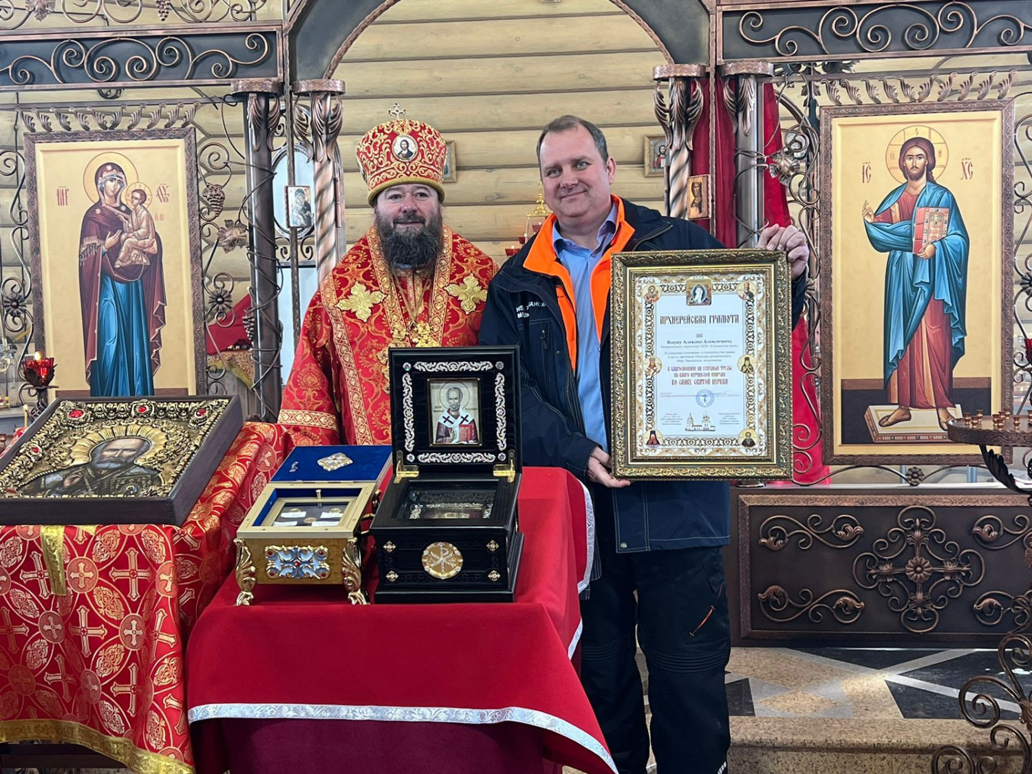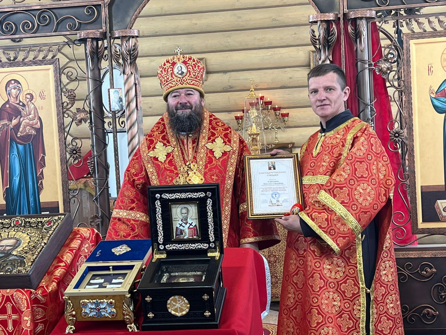 22 мая 2025 года, в праздник перенесения мощей святителя и чудотворца Николая из Мир Ликийских в Бар , епископ Нерчинский и Краснокаменский Макарий совершил чин великого освящения храма святителя Николая Чудотворца при горно-металлургическом комбинате «Удоканская медь» в поселке Новая Чара Каларского района и возглавил Божественную литургию в новоосвященном храме. Его Преосвященству сослужили: благочинный Нерчинского церковного округа протоиерей Александр Тылькевич; ключарь кафедрального собора Воскресения Христова г. Нерчинска иерей Роман Пичуев; клирик Белгородской епархии иерей Даниил Тарасовский. Диаконский чин: диакон Андрей Окладников. За богослужением молились Генеральный директор ООО «Удоканская медь» Ящук Алексей Алексеевич и сотрудники компании. По благословению Святейшего Патриарха Московского и всея Руси Кирилла на сугубой ектении были вознесены особые прошения и молитва о Святой Руси. По окончании Божественной литургии епископ Макарий поздравил молящихся со знаменательным событием для всей Русской Православной Церкви и поблагодарил всех принявших участие в строительстве храма. Храм расположен на самой высокой точке Нерчинской епархии — 1800 метров над уровнем моря. Владыка подчеркнул, что строительство храма на такой высоте – это свидетельство непоколебимой веры, способной преодолевать любые трудности. «Даже в самых отдаленных и труднодоступных уголках нашей страны живет и крепнет дух Православия», — отметил владыка. Затем епископ Макарий вручил архиерейскую грамоту за усердное попечение о строительстве храма в честь святителя Николая архиепископа Мир Ликийских Чудотворца «За усердные труды на благо Нерчинской епархии, во славу Святой Церкви» Генеральному директору ООО «Удоканская медь» Ящуку Алексею Алексеевичу. Благодарственными письмами «За усердные труды на благо Нерчинской епархии, во славу Святой Церкви» епископом Макарием были награждены сотрудники и работники ООО «Удоканская медь»: первый заместитель операционного директора — директор по производству Ежуров Руслан Олегович; технический директор операционной дирекции Нуржанов Мустафин Бактыкериевич; заместитель директора по общим вопросам Коростин Николай Сергеевич; заместитель директора по общим вопросам Ерёмин Евгений Александрович; начальник службы капитального строительства и ремонта Арутюнян Артём Арутюнович; начальник Службы капитального строительства и ремонта Шахов Дмитрий Борисович; заместитель генерального директора по капитальному строительству Радионов Сергей Валентинович; производитель работ службы капитального строительства и ремонта Горбунов Роман Викторович; Матвеев Сергей Валентинович, Грак Андрей Анатольевич, Игнатьев Роман Михайлович, Колесов Иван Сергеевич. Также благодарственными письмами «За усердные труды на благо Нерчинской епархии, во славу Святой Церкви» были удостоены благочинный Нерчинского церковного округа протоиерей Александр Тылькевич и Генеральный директор ООО «Интеко Сибирь» Кратков Сергей Андреевич. Все награжденные получили в подарок от владыки Макария сувенирные пасхальные яйца. Епископ Макарий преподнес Ящуку Алексею Алексеевичу икону XIX века святителя Николая Чудотворца, которая несомненно будет являться одной из главных святынь храма. Участники богослужен