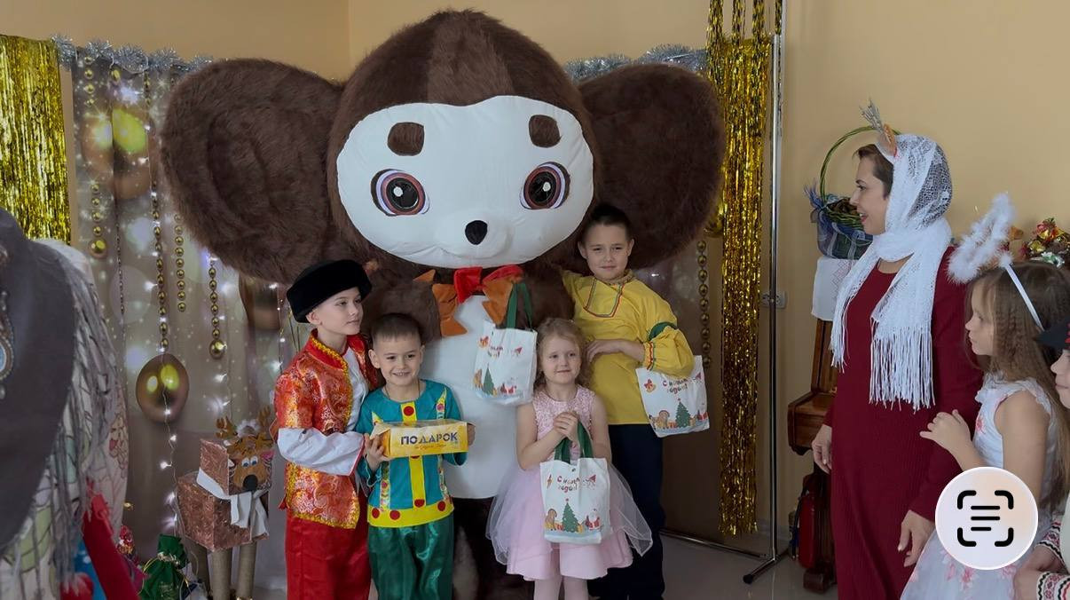 Группа медиков-добровольцев "МыВместе" приняла участие в украшении Центра и отправила на Рождественский праздник любимого мультгероя Чебурашку.