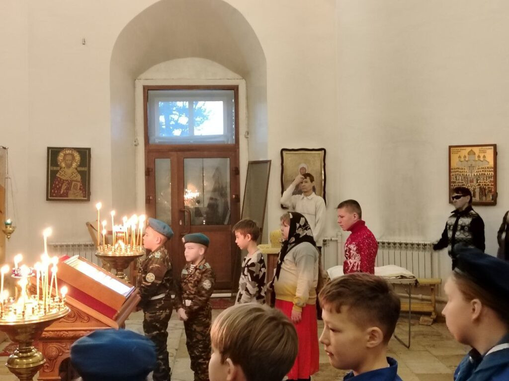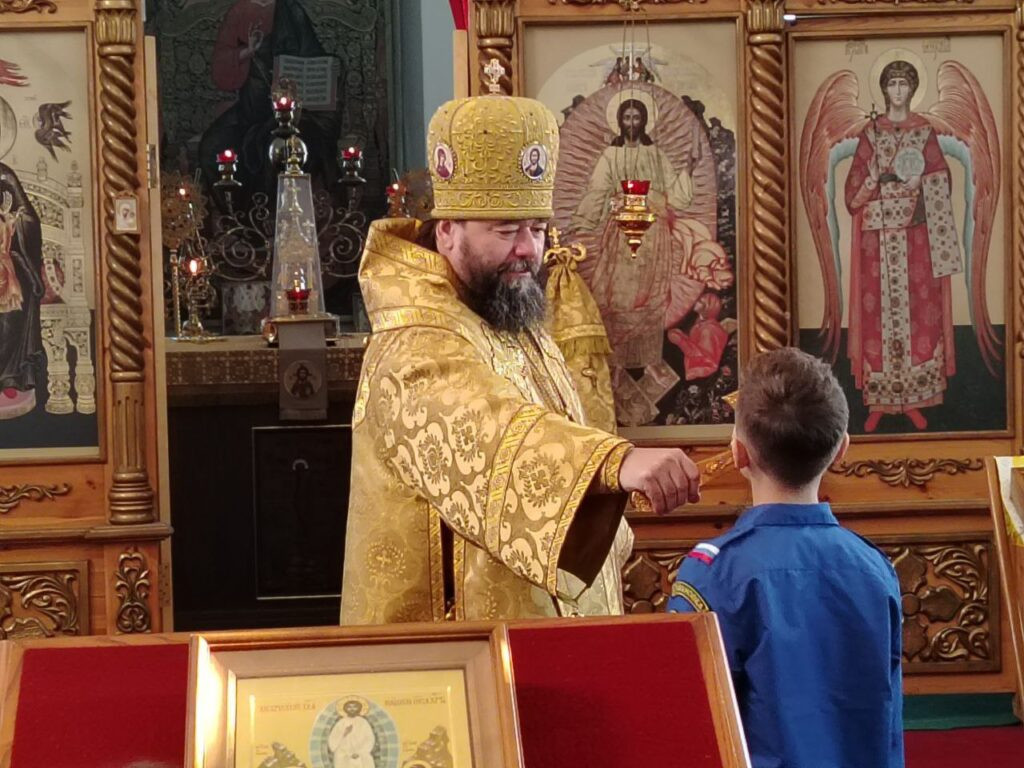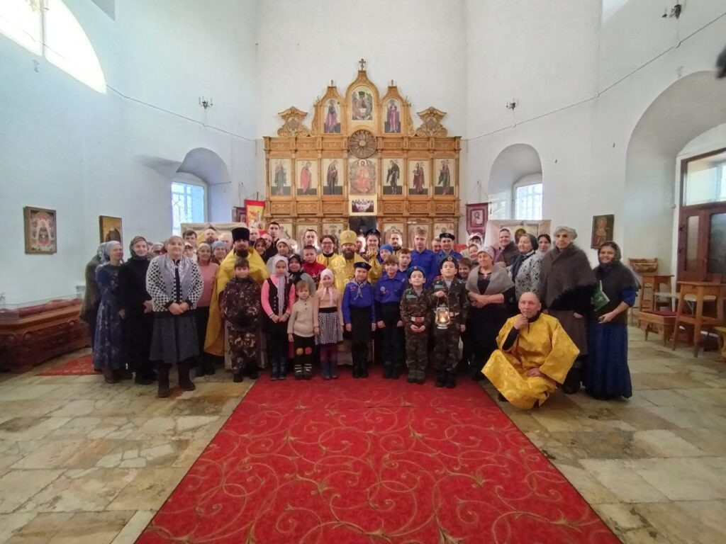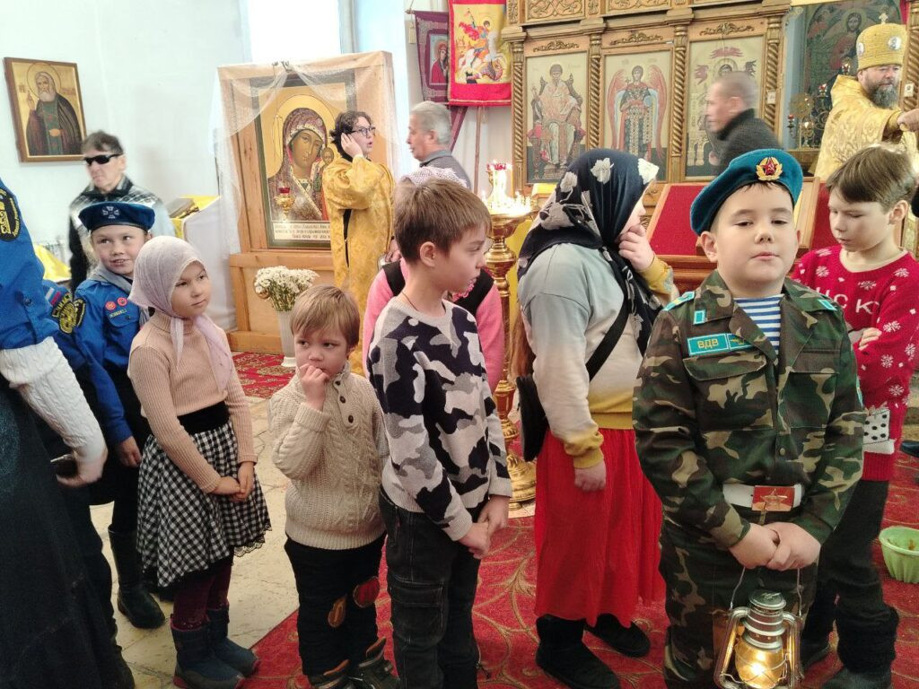 За богослужением молились дети отряда Братства православных следопытов в честь цесаревича Алексия Романова пгт. Атамановка (Читинская епархия).