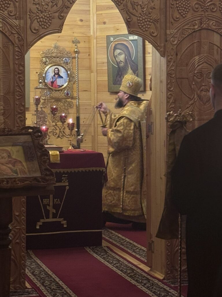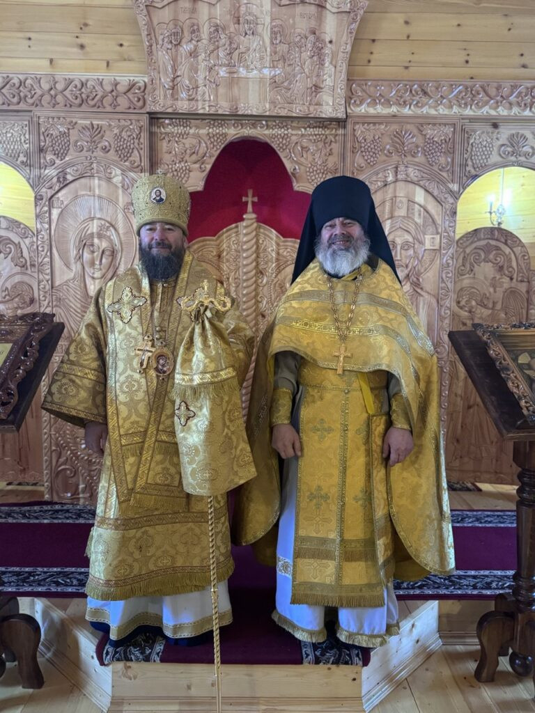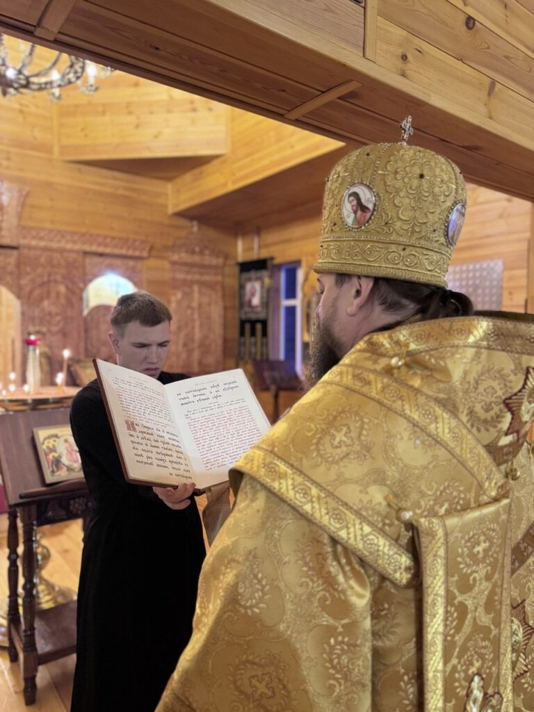 Его Преосвященству сослужил настоятель Архиерейского подворья Иоанно-Предтеченского Варлаама-Чикойского мужского монастыря Красночикойского района иеромонах Евстафий (Третьяков).