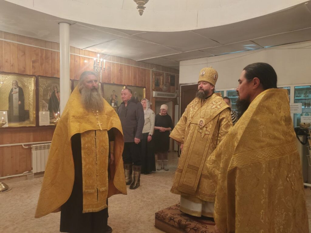 Епископ Макарий совершил всенощное бдение в храме в честь апостола Андрея Первозванного в поселке Новая Чара Каларского района