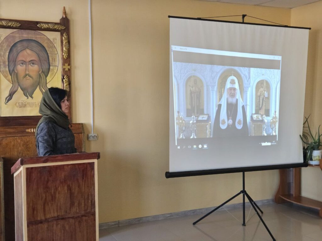 Руководитель Православного просветительского центра в Краснокаменске Т.Г. Алявдина выступила с докладом о Всероссийском проекте «Россия без сквернословия». Она подчеркнула, что данный проект направлен на борьбу с негативной лексикой в обществе и формирование культуры общения, основанной на уважении и доброте.
