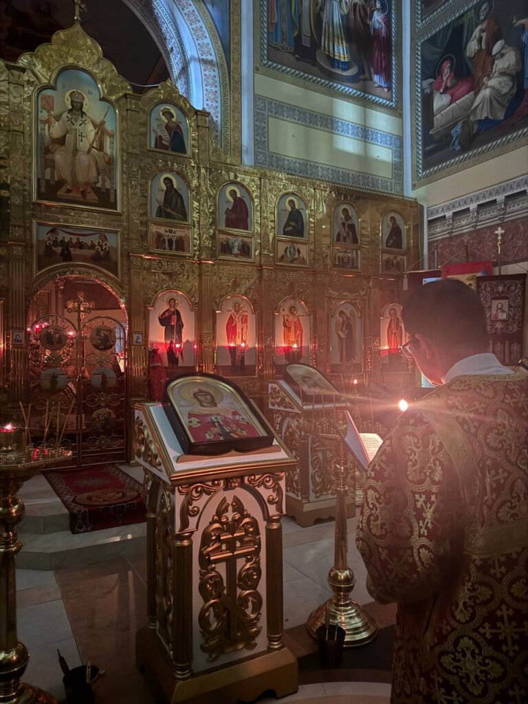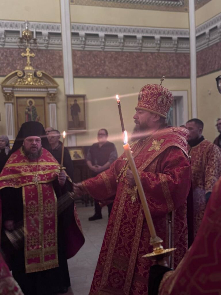 Вечером 15 декабря 2025 года, накануне вторника седмицы 28-й по Пятидесятнице, епископ Нерчинский и Краснокаменский Макарий совершил всенощное бдение в соборном храме Спаса Нерукотворного Образа в Краснокаменске.