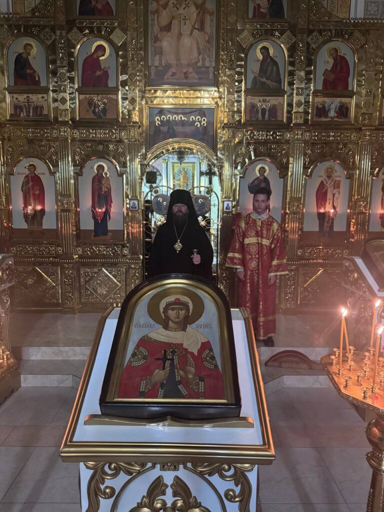 По окончании богослужения, епископ Макарий обратился к прихожанам с архипастырским словом, в котором он рассказал о жизни и подвигах святой великомученицы Варвары.