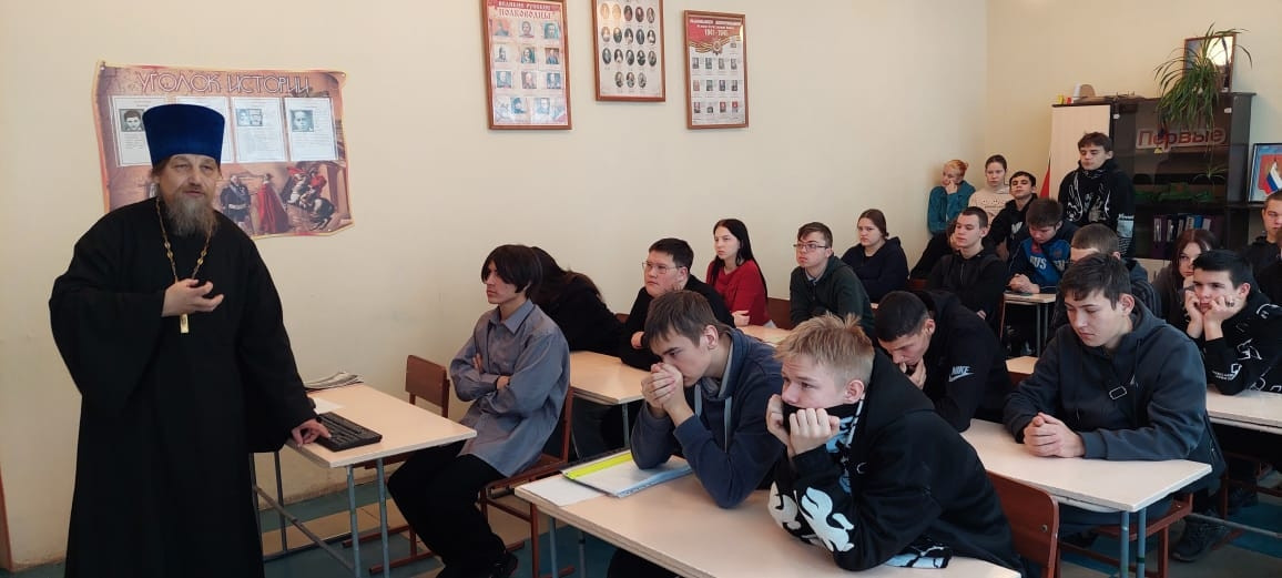 В поселке Первомайский священнослужитель рассказал студентам о святитель Ионе Ханькоуском