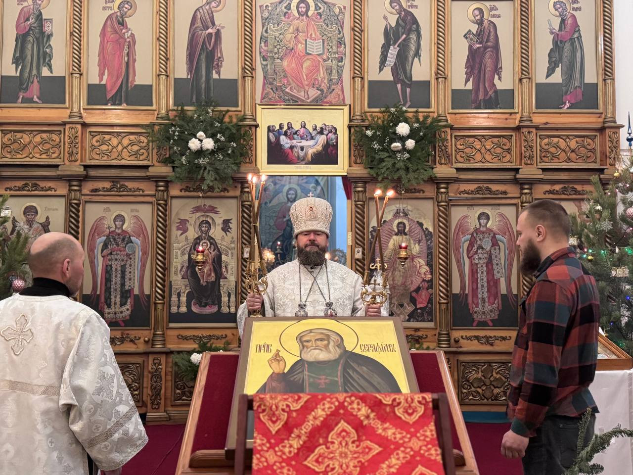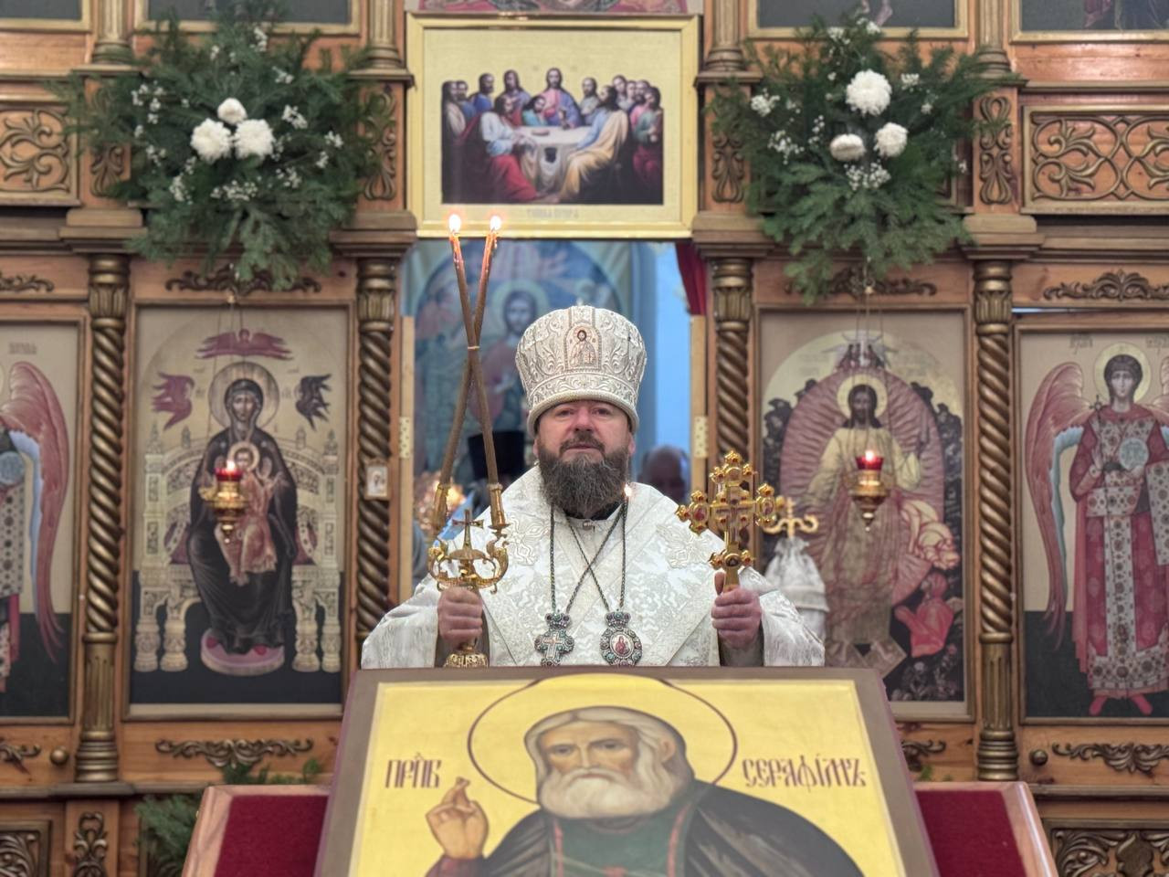 После завершения Литургии, епископ Макарий обратился к верующим с архипастырским словом о преподобном Серафиме, Саровском чудотворце: