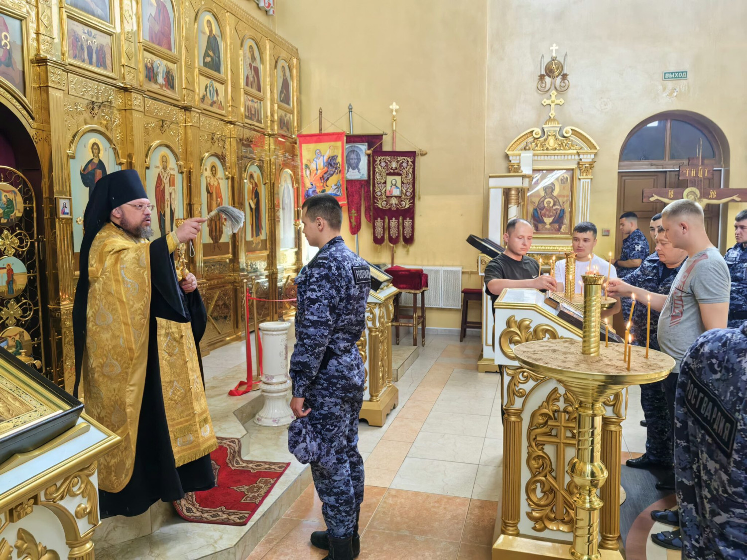 В преддверии дня памяти святого равноапостольного князя Владимира — небесного покровителя войск национальной гвардии сотрудники ОВО по г. Краснокаменску и Краснокаменскому району — филиала «ФГКУ УВО ВНГ России по Забайкальскому краю» посетили соборный храм Спаса Нерукотворного образа в Краснокаменске. Настоятель храма игумен Симеон (Зимняков) рассказал о празднике Крещения Руси, о святом равноапостольном князе Владимире и о роли равноапостольной княгини Ольги, предшественницы Владимира в принятии христианства и укреплении государства. Отец Симеон подчеркнул параллель между исторической ролью князя Владимира и современной миссией росгвардейцев. Так же, как князь Владимир заложил основы сильного и единого государства, так и сотрудники Росгвардии сегодня стоят на страже его безопасности, обеспечивая порядок и спокойствие граждан. Священнослужитель акцентировал внимание на глубокой взаимосвязи веры и воинского долга, отметив, что истинная сила воина кроется не только в физической подготовке и умении владеть оружием, но и в нравственных качествах – чистоте помыслов, чести, верности присяге и преданности Родине. Игумен Симеон особо выделил важность духовной составляющей в службе правопорядка, напомнив о многовековой традиции почитания святых воинов на Руси, которые являлись примером мужества, самоотверженности и беззаветной любви к своей земле. Он напутствовал росгвардейцев на дальнейшую доблестную службу, призвав их всегда помнить о высоком предназначении защитника и следовать примеру этих святых воинов. В завершение встречи игумен Симеон от лица епископа Нерчинского и Краснокаменского Макария поздравил сотрудников ОВО с праздником, окропил всех святой водой и благословил на дальнейшую безупречную службу и защиту Отечества. ©Нерчинская епархия